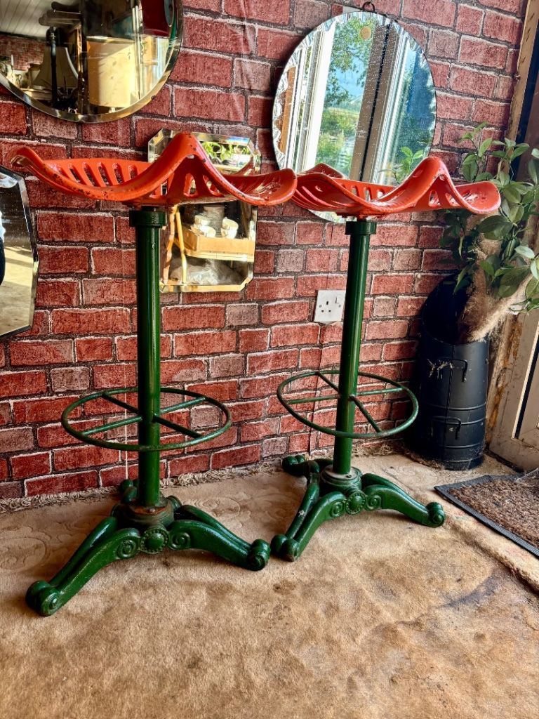 in John deer green & orange, rustic-Farmhouse style stools have a solid pattern & extremely heavy (cast iron not cheap replicas)