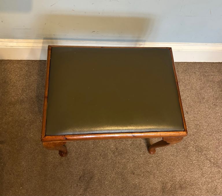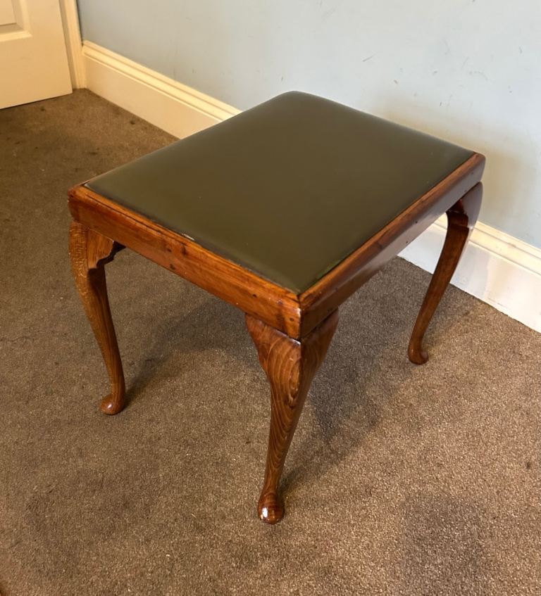 Vintage Wooden Dark Green Leather Piano Stool H17in/43cm W19in/49cm D14in/36cm Good condition D023