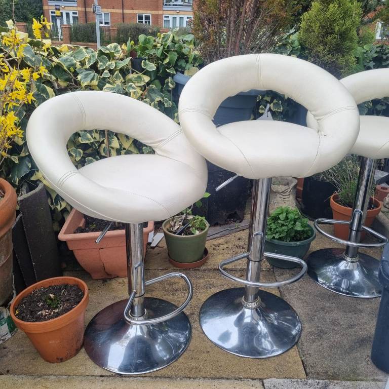 4 white leather bar stools. A bit worn but in good condition. £25 each, collection only.