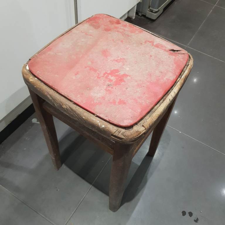 A great wood stool give it some tlc and it will look lovly well built will last for years grab a bargain I just need space