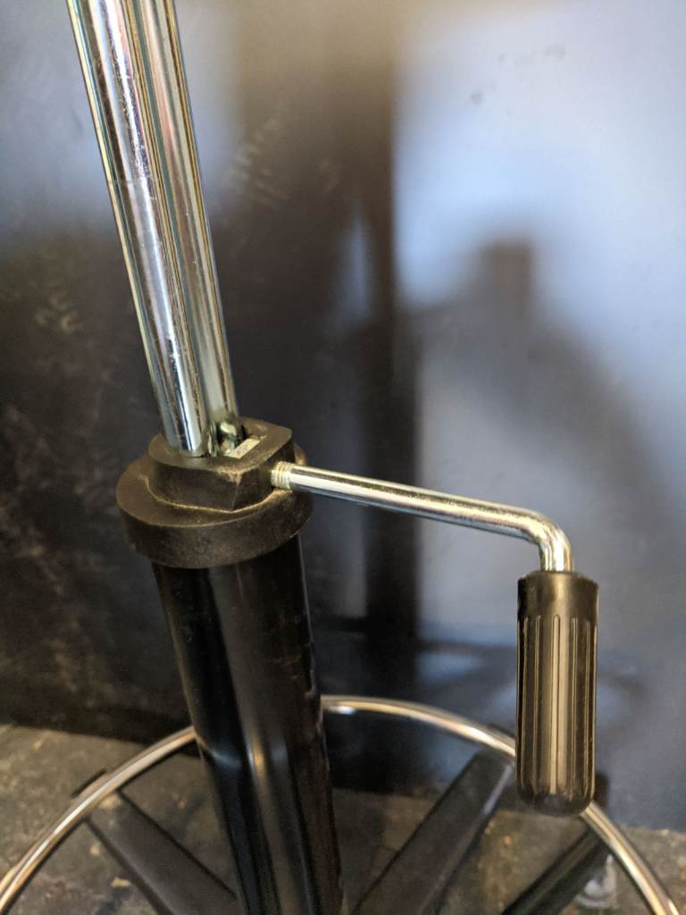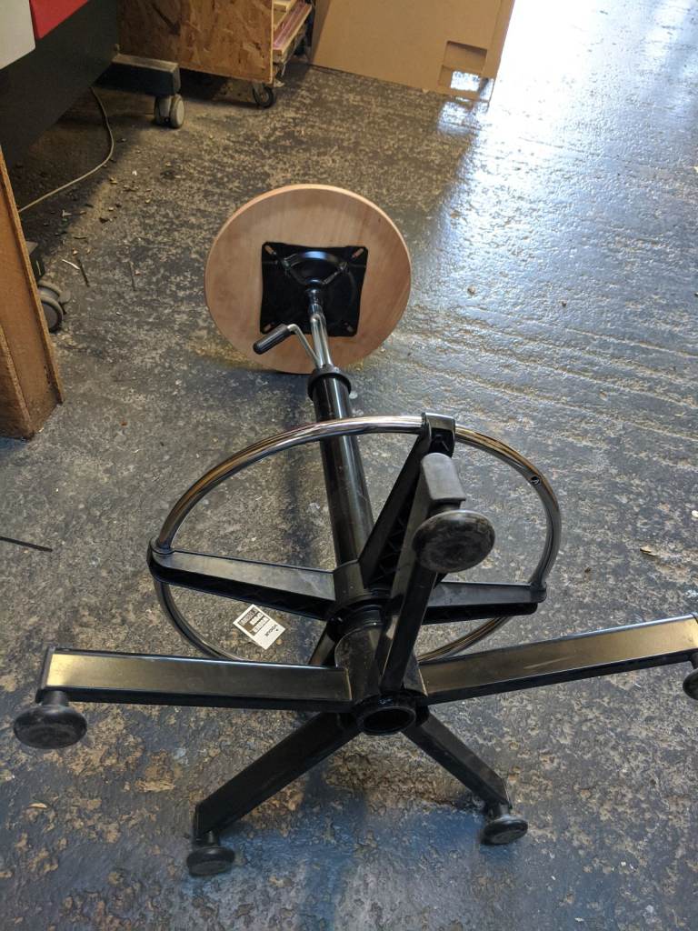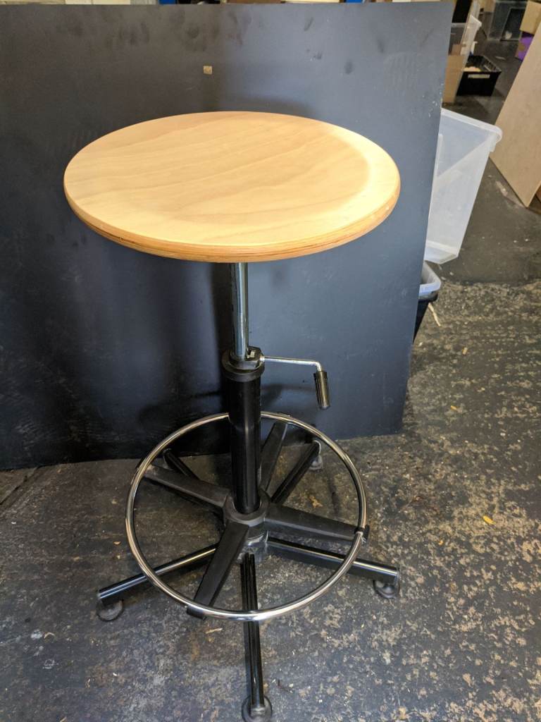 Workshop stools, with adjustable height and lock system at base to stop chair from spinning if desired. Very well manufactured stools and as a pair could make a great addition to a garage workshop or studio space. Hardly ever used so absolute bargain to be had! Will sell both for £30 or each for £17.50