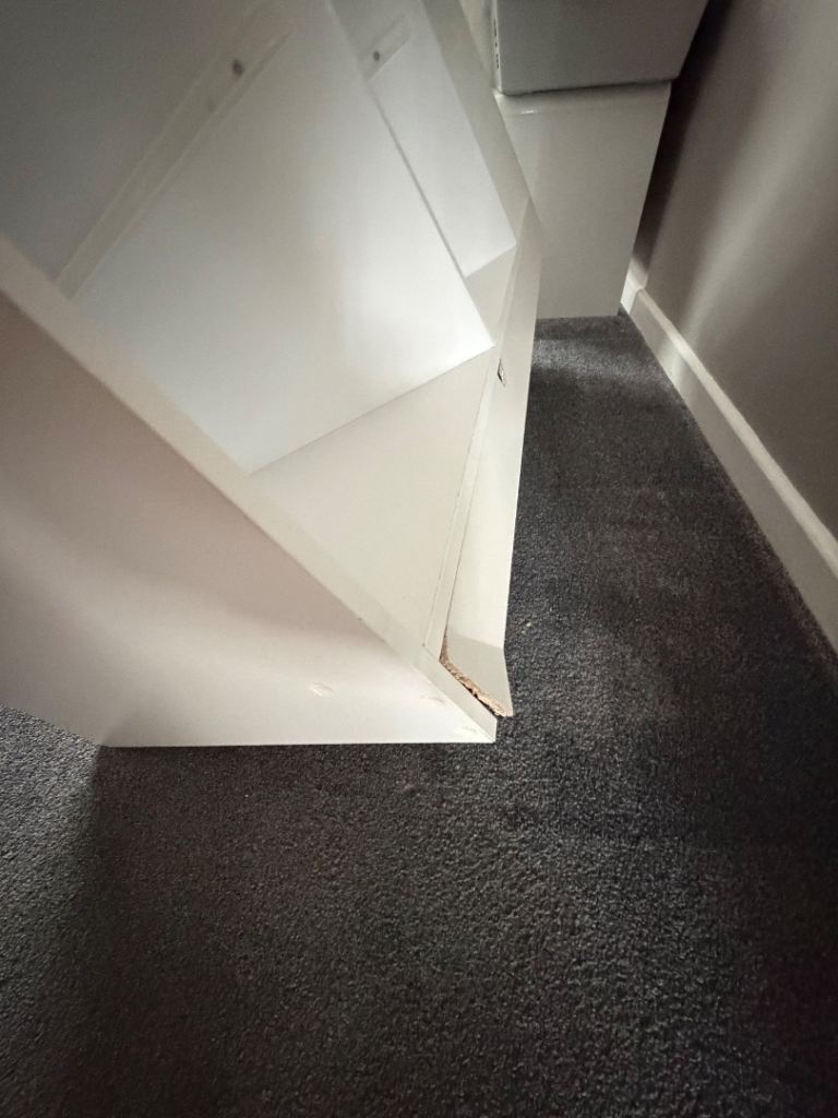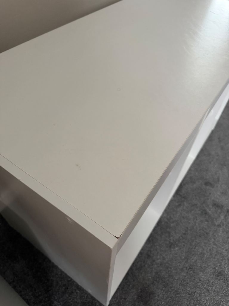 There are a few small marks on the top surface and a minor chip near the bottom edge.