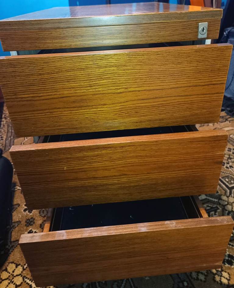 - Two storage cupboard and three drawers.