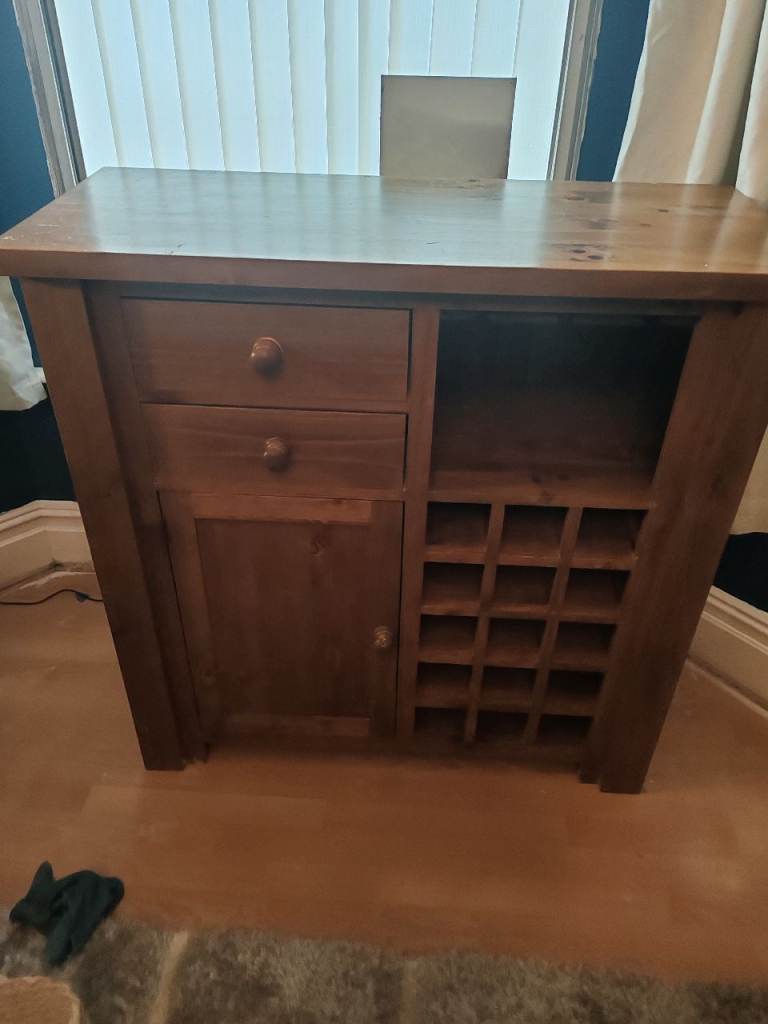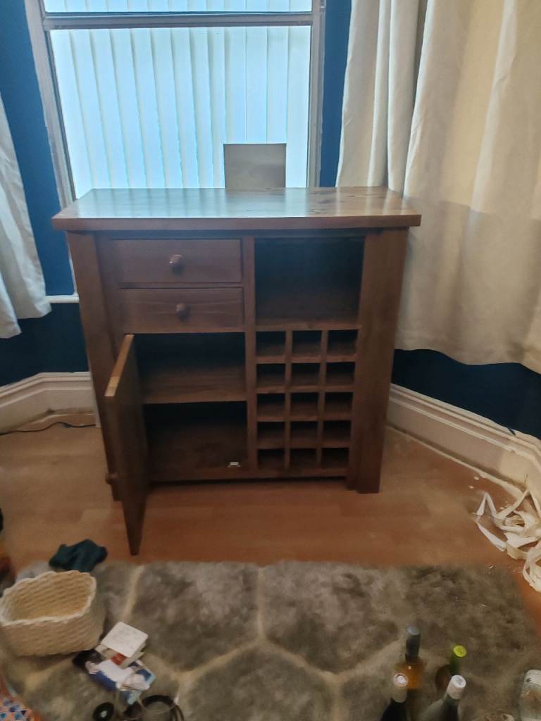 Cabinet with wine rack and glass holder good condition. Pick up only.