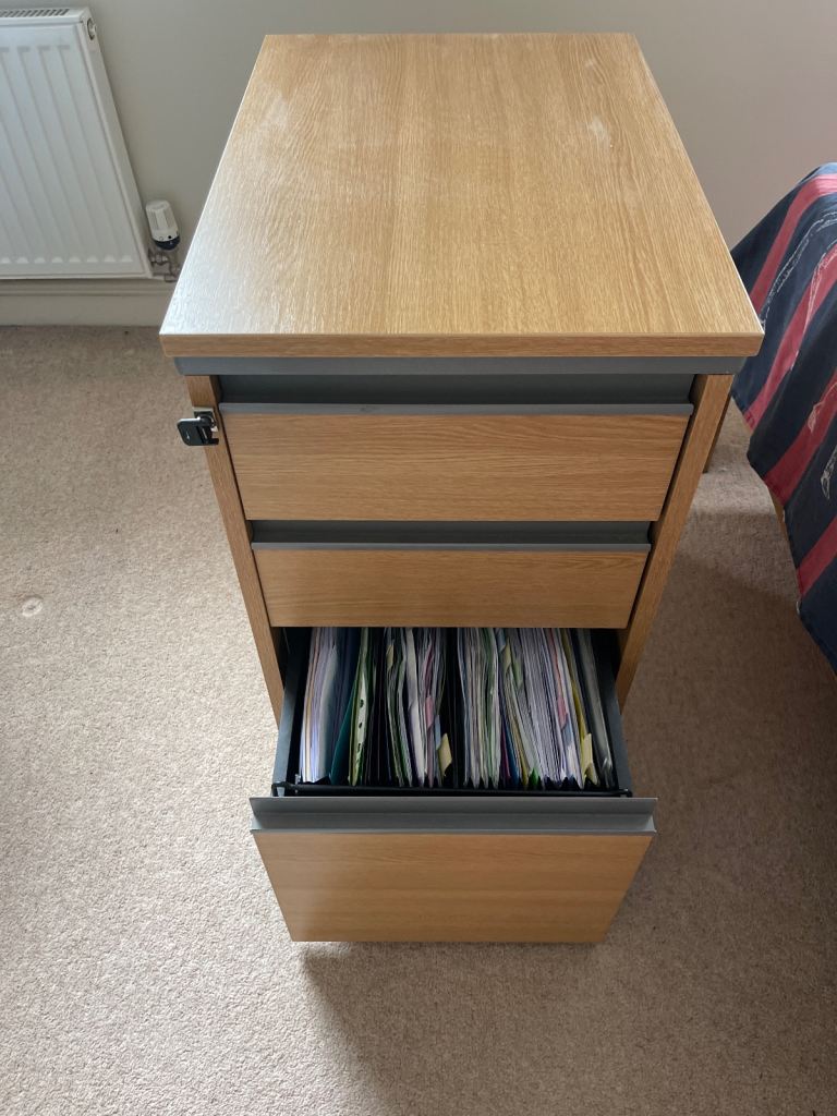 Lockable filing cabinet. 70cm tall, 40cm wide, 55cm deep