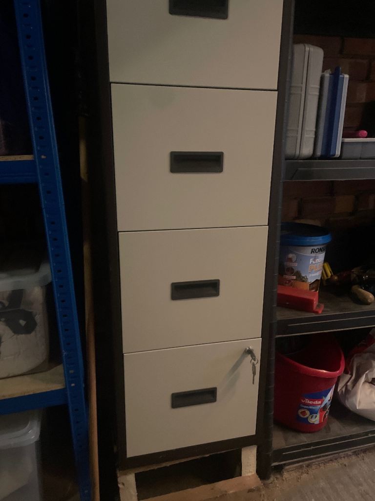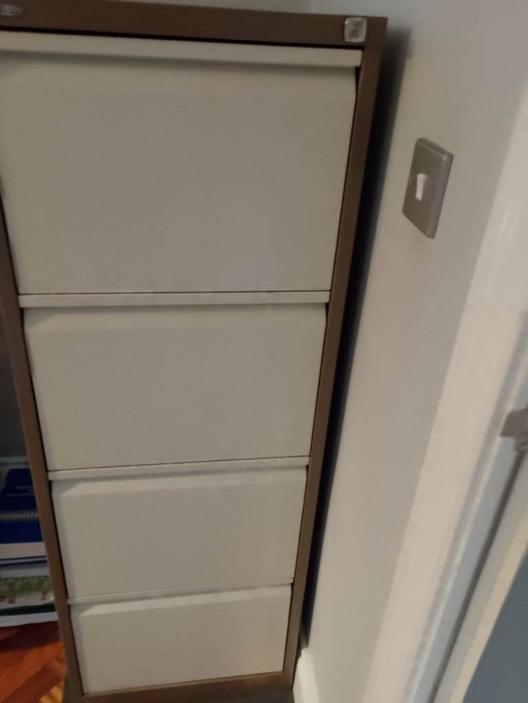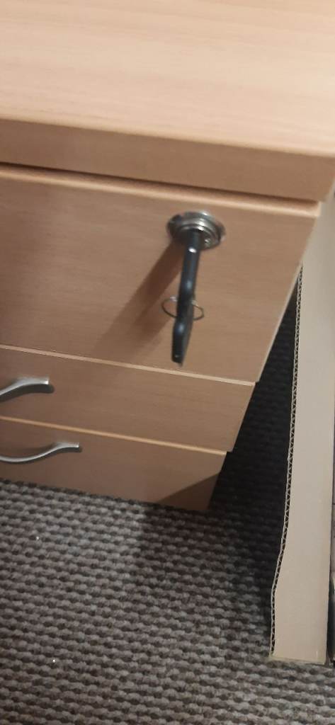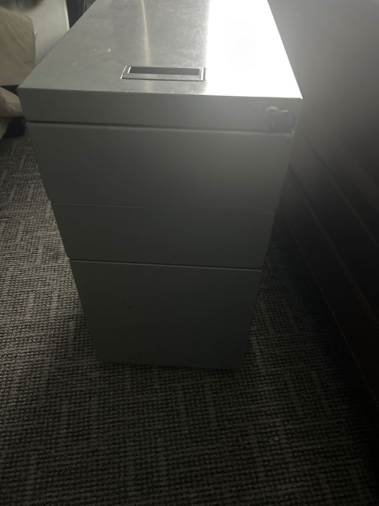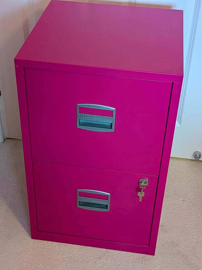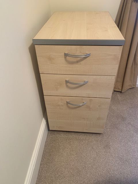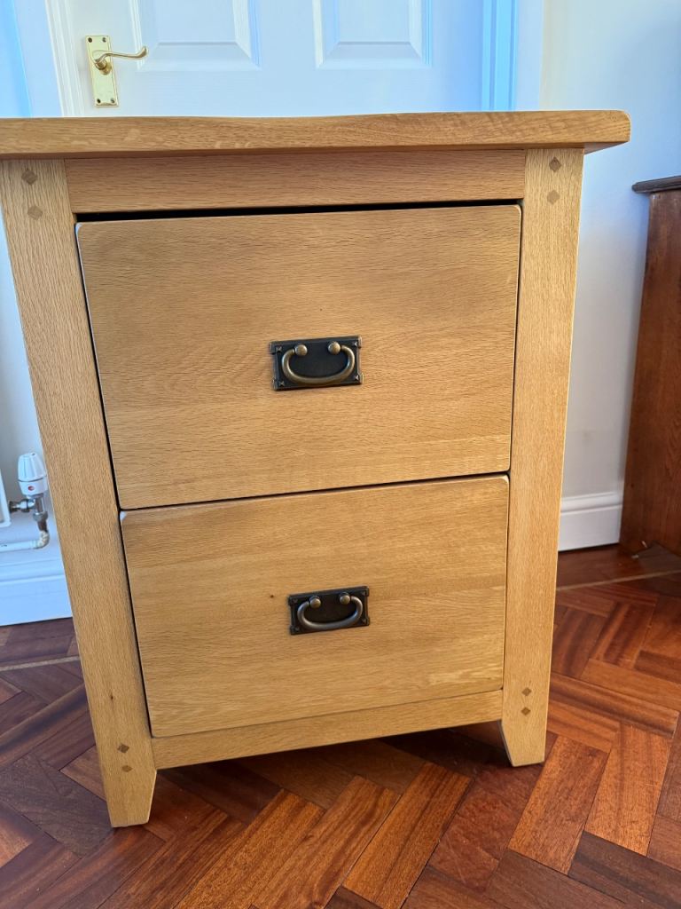 Wooden 3 drawer filing cabinet. Lockable with keys. Perfect condition. 80cm Deep x 43cm Wide x 72.5cm High.