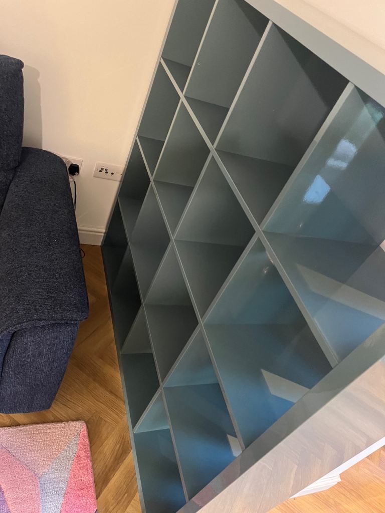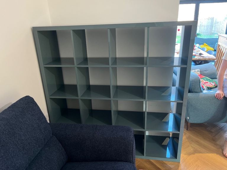 Used IKEA Kallax 4x4 unit in a glossy blue.