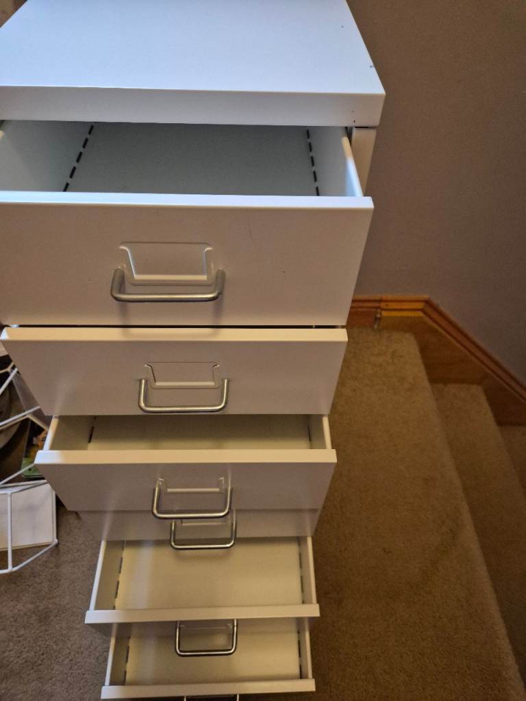 Ikea Metal Drawers on casters, not that old, change room about to not longer needed. Good condition apart from some minor marks on the outter of the cabinet. The front has no marks. Was used under desk and not noticeable on our high sleeper (see add).