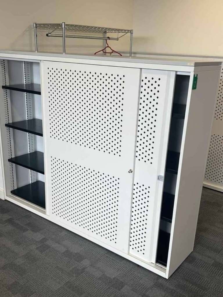 Posting for 8+ yearsLarge white filing cabinet with shelves