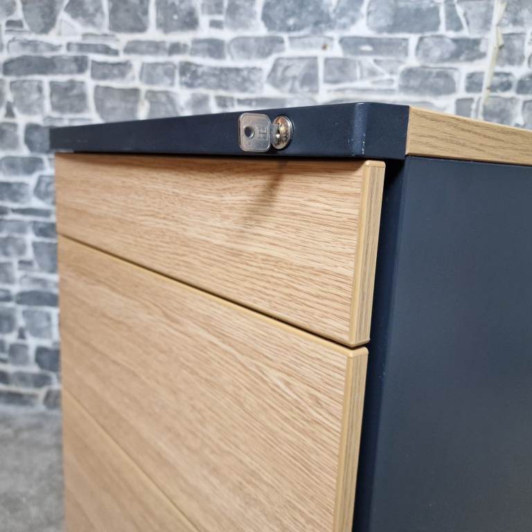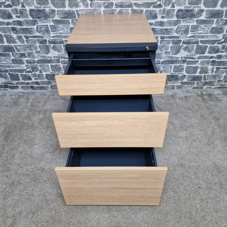 All drawers open and close smoothly and the cabinet comes with the key, allowing the top drawer to lock for secure storage. Internally clean and tidy, ideal for files, paperwork or general storage.