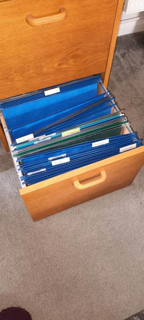 Retro wooden 3 drawer filing cabinet