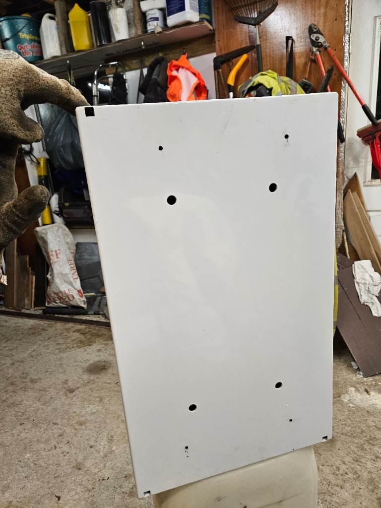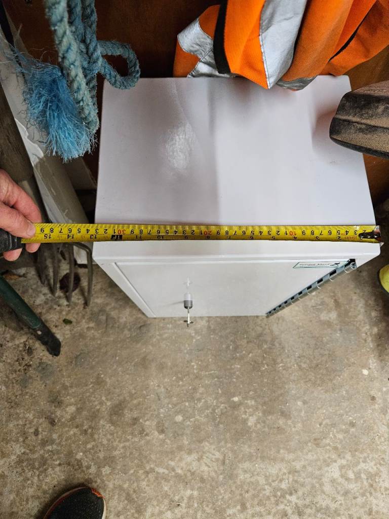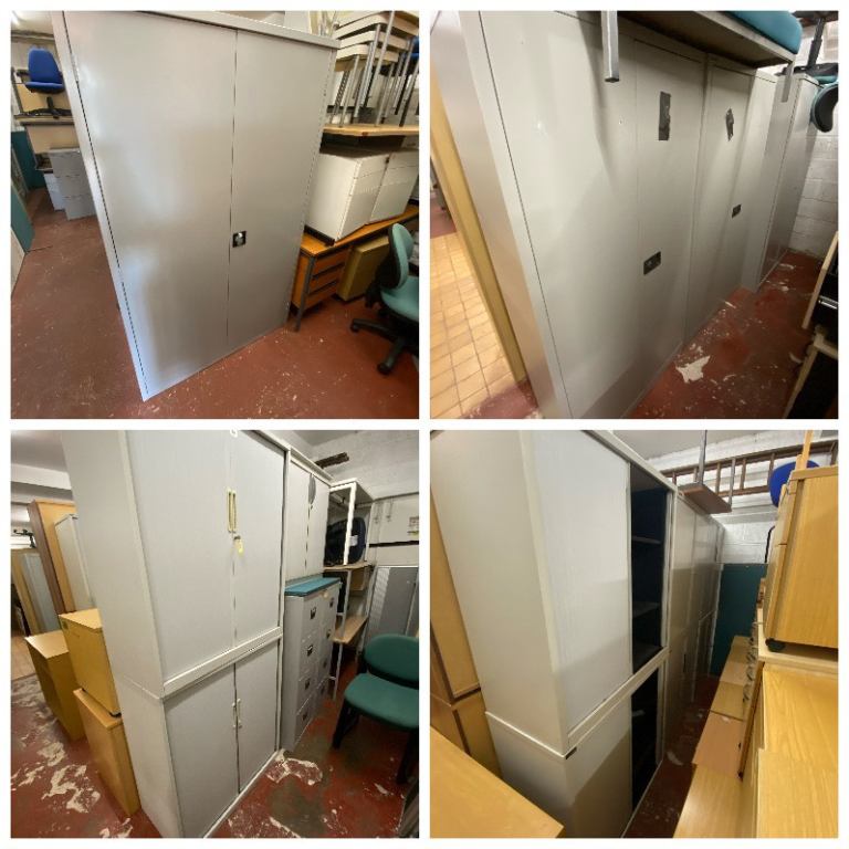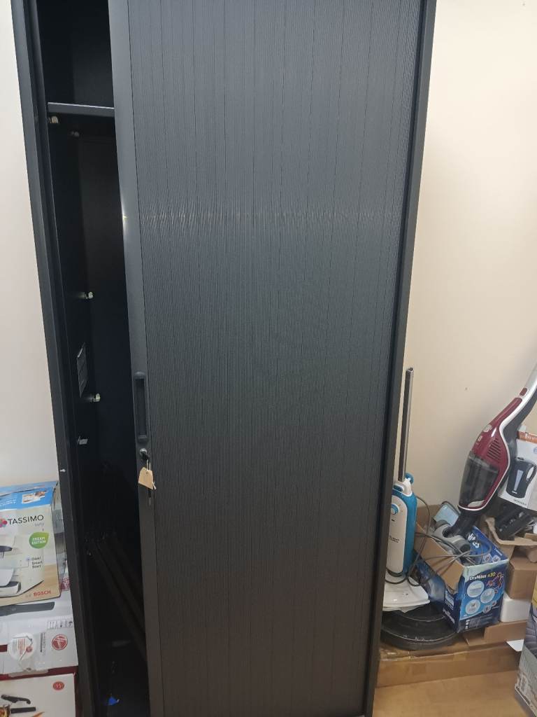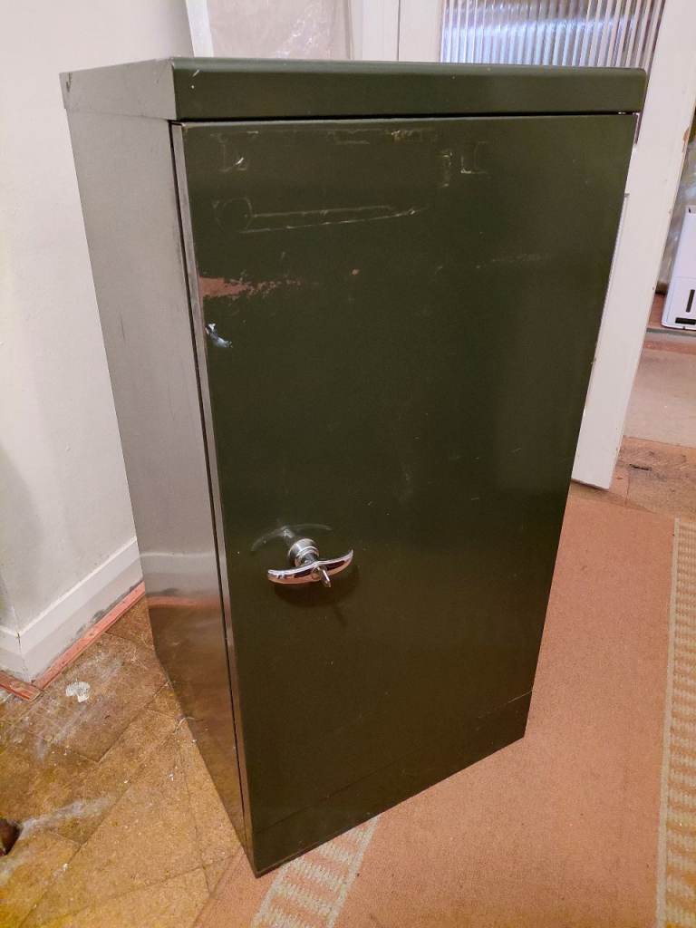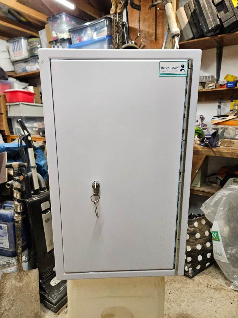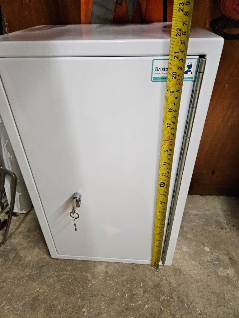 Heavy duty steel cabinet. Ideal for small items . Has a built in lock with key