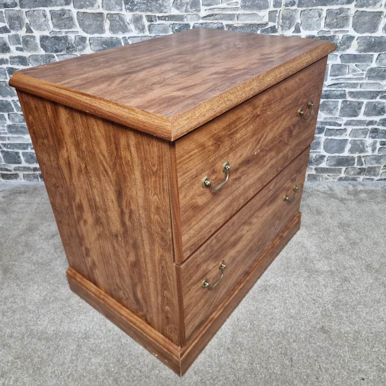 Vintage Wood Veneer 2 Drawer Filing Cabinet – Deep Storage