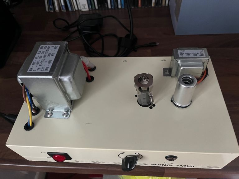 This is the amp chassis and all transformers valves and electronics lifted from my valve junior combo. Works fine input socket a bit on off at times could be the wires to it or my cable didn’t have another to check this. I’ve had this from new over 20 years and it’s had very little use. For an enthusiast this is an easy thing to put right and these are sought after valve amps in the class A category