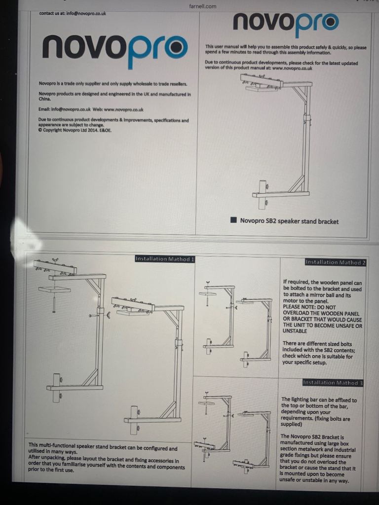 Novo pro SB2 Speaker Stand Lighting Bracket