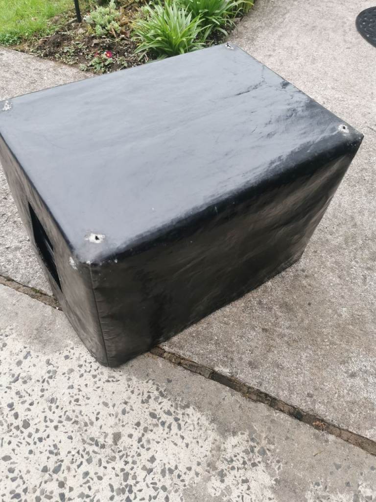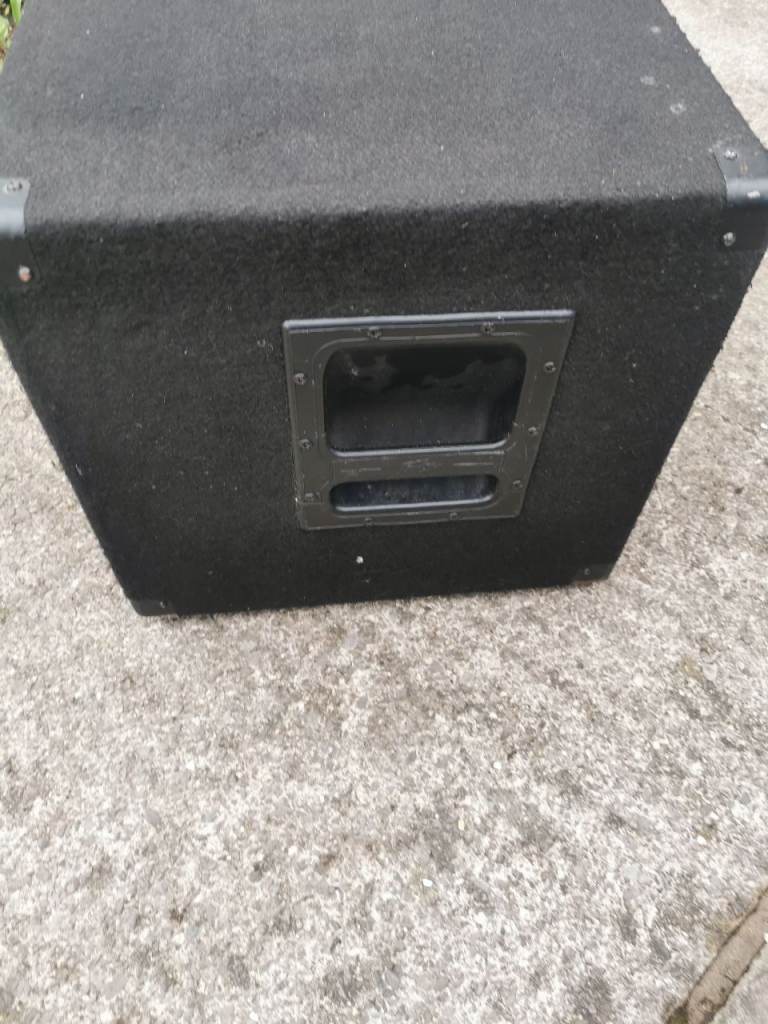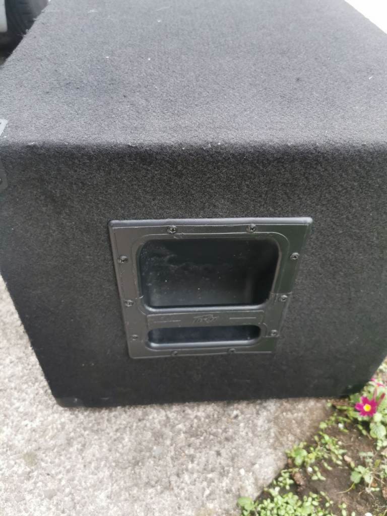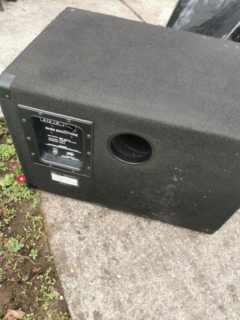 Peavey 2x10" cabinet with adjustable horn. The 2 ten inch speakers were swapped for Eminence gamma 10A s. 300 watts each, some years ago which sound amazing, you won't need an additional cab it's that loud. Sad to see it go but times change. Can be tried out here. There is a vinyl cover with it..