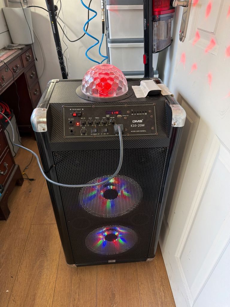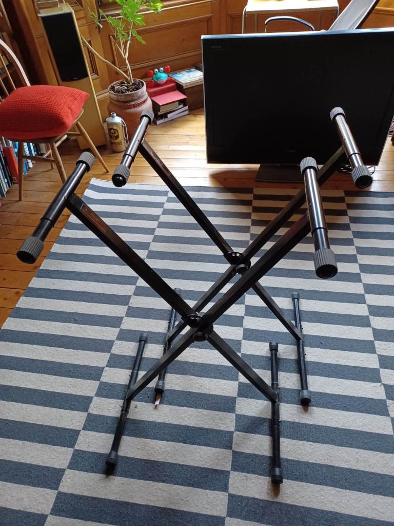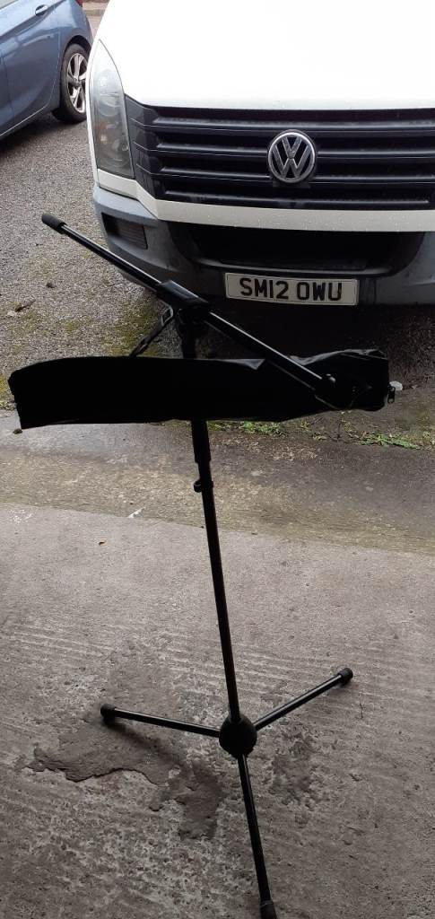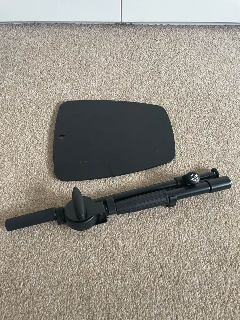 Pair of speaker stands for sale. White metal, adjustable, in bag.