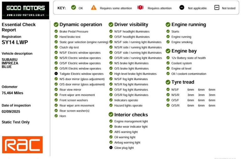 Posting for 7+ years2014 14 SUBARU IMPREZA 1.6I RC HATCHBACK 5DR PETROL MANUAL 4WD EURO 5 (S/S) (114