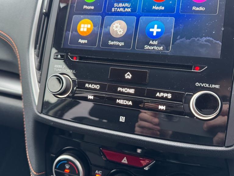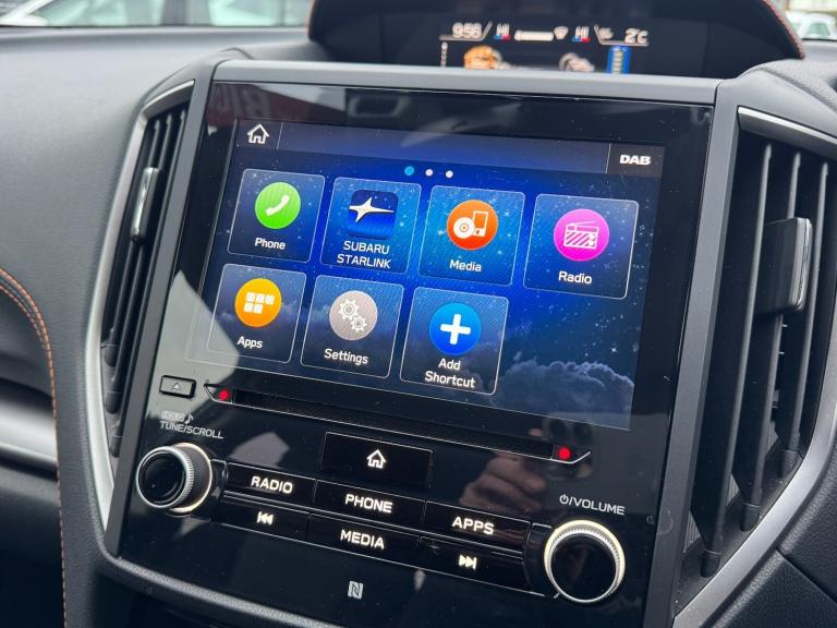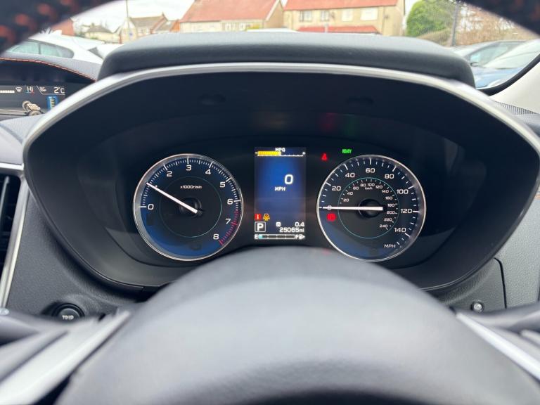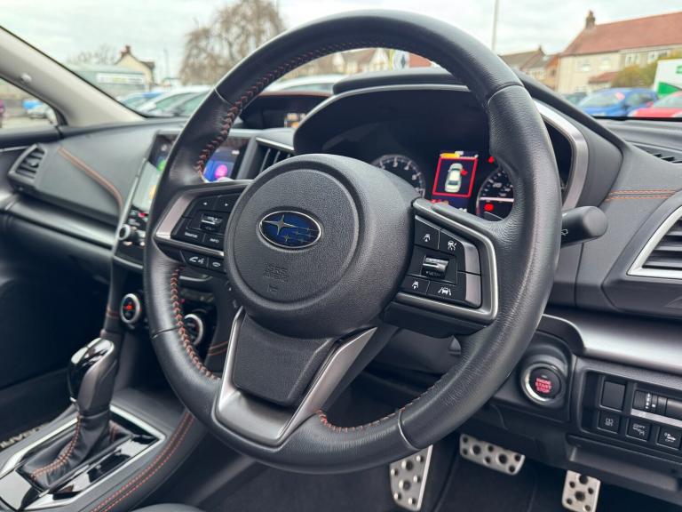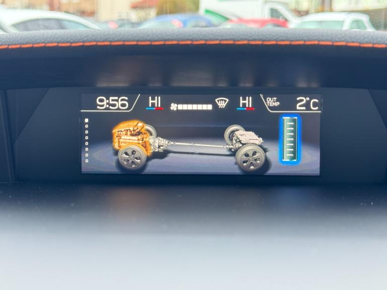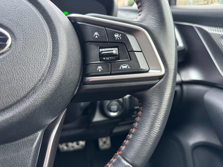 ..4.3'' LCD multi information display, 8'' touch screen, Apple car play/Android Auto, Blind spot monitoring, Bluetooth system, eCall emergency call system, eCall emergency system, EyeSight - Adaptive cruise control, pre-collision braking/throttle, lane sway/departure warning, lane keep assist + lead vehicle start alert, Front view monitor, Fuel lid lock release, Lane change assistant, Pin Code Access, Rear cross traffic alert, Reversing camera, SI-Drive (Subaru Intelligent Drive) intelligent mode & sport mode, Speed sensitive power steering, Stop/start system, Trip computer, Voice control system, X-Mode, Sports suspension, SVDC - Subaru Vehicle Dynamics Control, 2 USB ports, 6 speakers, Auxiliary input socket, DAB Digital radio, iPod connection, Premium audio system, Radio/CD, Steering wheel mounted audio controls, Auto dimming rear view mirror, Automatic headlights, Automatic rain sensing wipers, Body colour bumpers, Body colour door handles, Body colour door mirrors, Daytime running lights, Directional LED headlights, Heated door mirrors, Heated rear window with timer, Heated windscreen + washer jets, High beam assist, LED front fog lights, Pop-up headlight washers, Power folding door mirrors with built-in LED indicators, Power windows with drivers side front window auto up/down function with pinch protection, Privacy glass for rear doors, rear quarters and rear window, Rear fog lights, Rear side wing doors, Rear wiper, Roof rails, Roof spoiler, Shark fin antenna, Steering responsive headlights, Third brake light, UV protection glass in windscreen and front side windows, Wheel arch cladding, Windscreen wiper de-icer, 3 seat bench in 2nd row, 4-way manually adjustable passenger's seat, 6-way manually adjustable driver's seat, 60/40 split folding rear seat, Adjustable height seatbelt anchor, Aluminium pedals, Cargo hooks, Centre console cupholder, Centre console storage box, Cloth upholstery, Defroster vents for front and side windows, Door pockets with bottle holder, Dual zone automatic air conditioning system with anti-dust filter, Front armrest, Front map lights, Front passenger side seatback pocket, Heated front seats, Height adjustable driver's seat, Illuminated centre tray, Illuminated driver/passenger vanity mirror, Isofix child seat attachment, Leather gear knob, Leather wrapped steering wheel and gearshift knob, Luggage area lamp, Luggage hooks, Paddle shifts, Rear armrest, Rear headrests, Rear seat heater ducts, Retractable parcel shelf, Side
