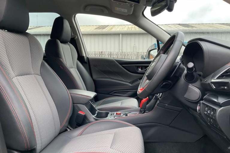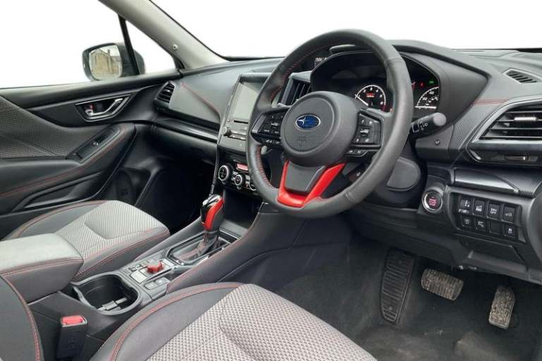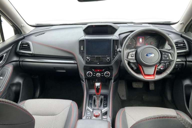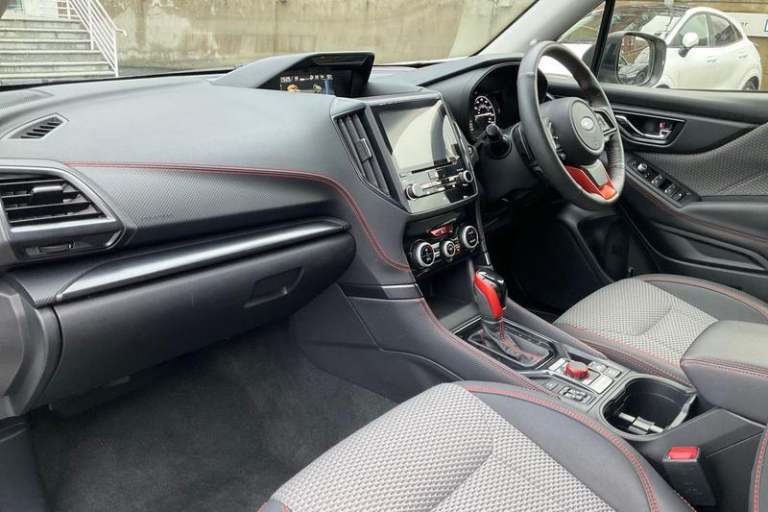 4.3 LCD multi information display - fuel economy, Eco-evaluation, active safety, clock/outside temperature and self check, 8 Multifunction colour touch screen, Apple car play/Android Auto, Bluetooth Handsfree Phone Connection, Driver monitoring system, E-Active shift, E-call, Eye sight assist monitor, EyeSight - ADC, pre-collision brake/throttle, lane sway/depart warn&prevent, Emerg lane keep assist+Auto steer+lead vehicle start alert+lane centering, Fuel lid lock release, Gesture based temperature setting adjustment, Power tailgate, Reversing camera, Satellite navigation system, Seatbelt indicator light, Service interval indicator, SI-Drive (Subaru Intelligent Drive) intelligent mode & sport mode, Side view monitor, Speed limiter, Speed sensitive power steering, Start/stop system, Subaru rear vehicle detection - blind spot monitoring, lane change assist, rear cross traffic alert, Voice recognition, Auto dimming rear view mirror, Automatic LED headlights with auto leveliser, Automatic rain sensing windscreen wipers, Black paint roof rails with red/orange inserts, Daytime running lights, Front sports bumper, Heated door mirrors, Heated rear window with timer, High beam assist, Intermittent front and rear wash/wipe, LED front fog lights, Pop-up headlight washers, Power folding black door mirrors with built-in LED indicators, Power windows with drivers side front window auto up/down function with pinch protection, Privacy glass for rear doors, rear quarters and