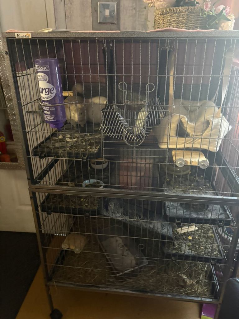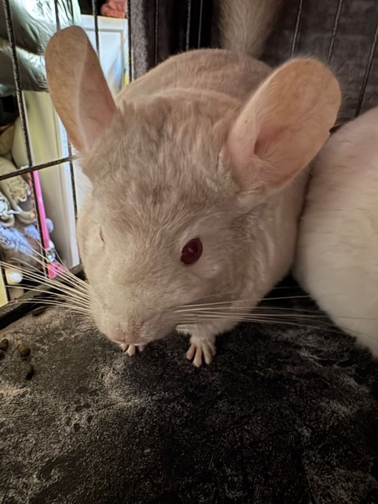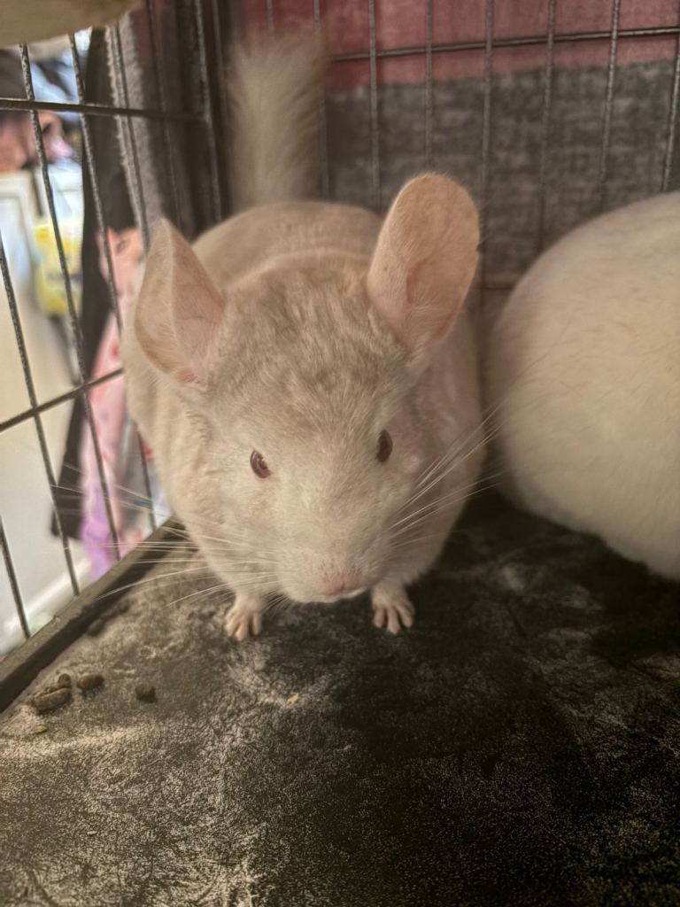 Pair of chinchillas for sale. Grey is male. Female is white. 1 year old. Male has been neutered. Comes with cage and all accessories. £150 ono cash on collection