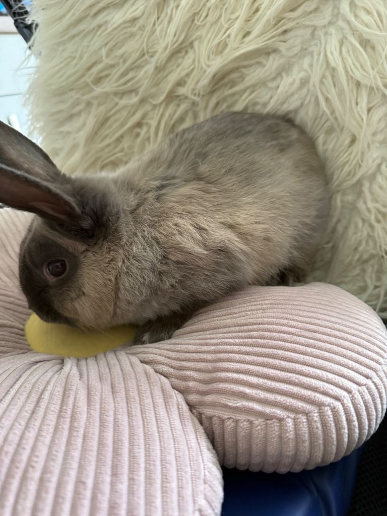 Cream/grey female rabbit 5 month old comes with cage, bedding,bowls,bottle,food. Lovely little girl she is an indoor rabbit. Selling due to illness. Needs a fever home ASAP can deliver for small fee