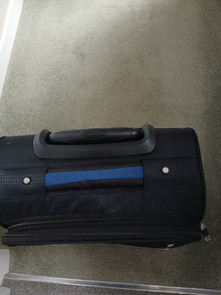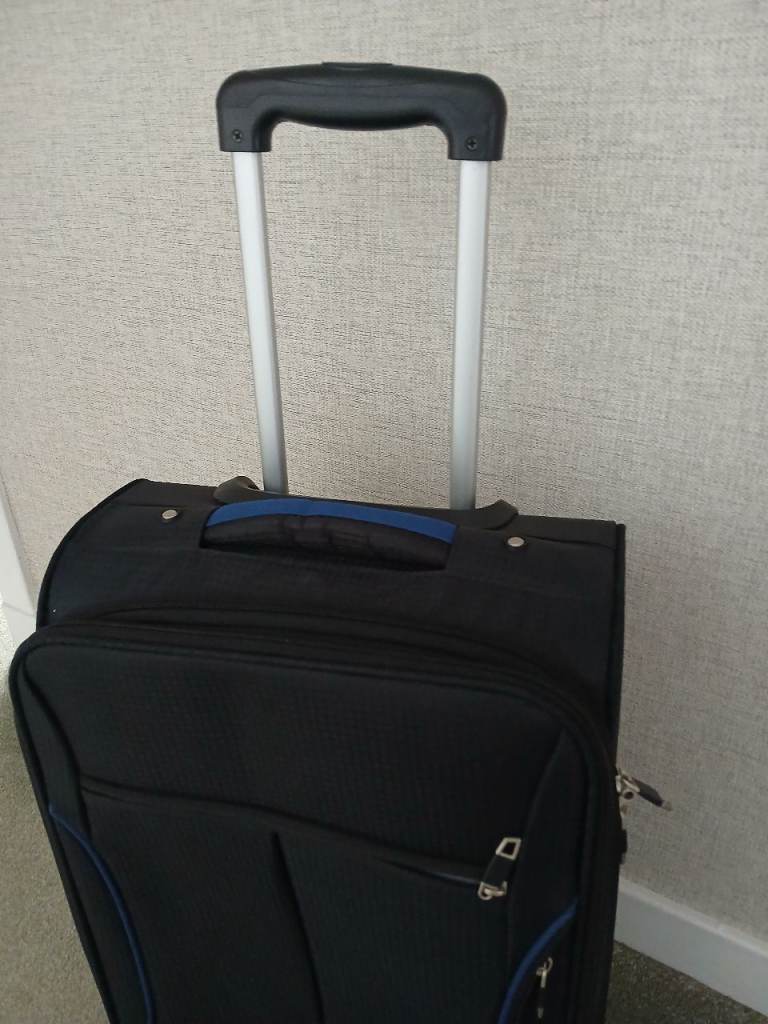 Small black suitcase with handle and wheels for easy manoeuvring.