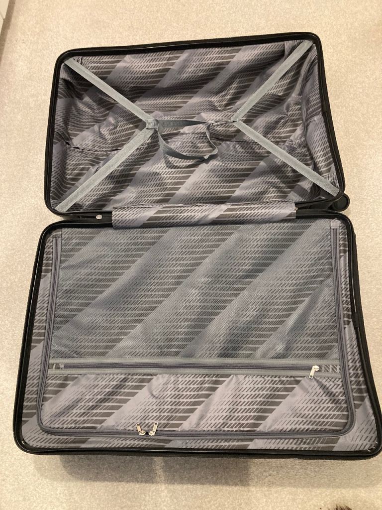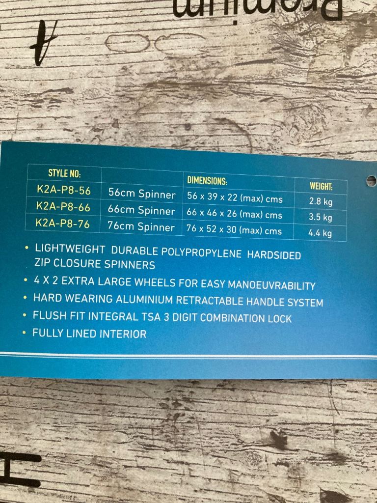 K2 Global Pro-Glide 8 P8-76 deep blue large suitcase. See photo for details and dimensions. As new, replaced by airline after damaging previous case; used once but a little too big for new car boot. Full zip cover to one half of clamshell interior and two zipped compartments for smaller items. Very manoeuvrable and practical, roughly 94 litre capacity. Instructions for Travel Sentry 3 digit combination lock available.