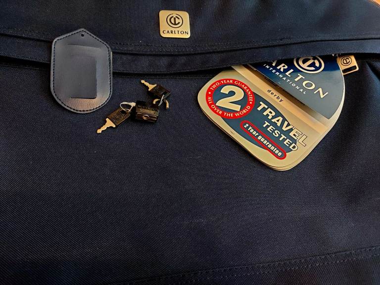The navy blue colour adds a touch of sophistication to your luggage, while the Carlton brand ensures quality and durability.