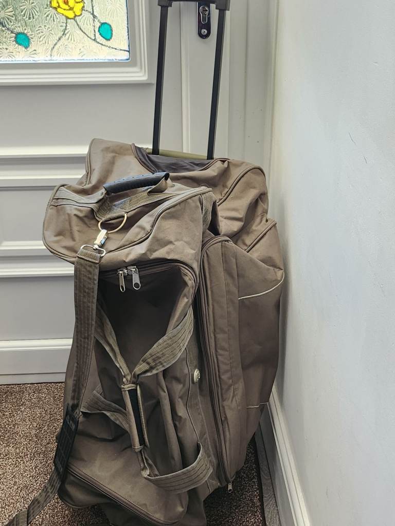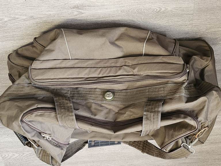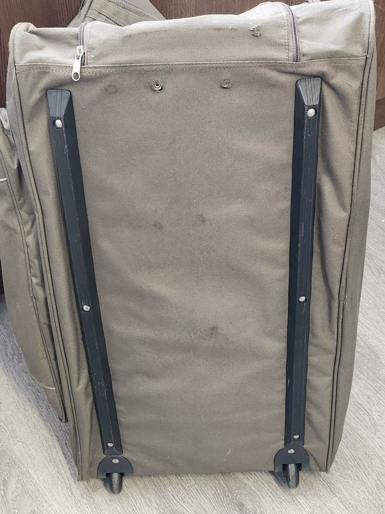 This is a large trolley bag with should straps, hand carry handle, it is perfect for holidays camping trips, sports gear, road trips etc. There is a little bit of wear in places, which I have tried to show in the photos. Overall condition is good.