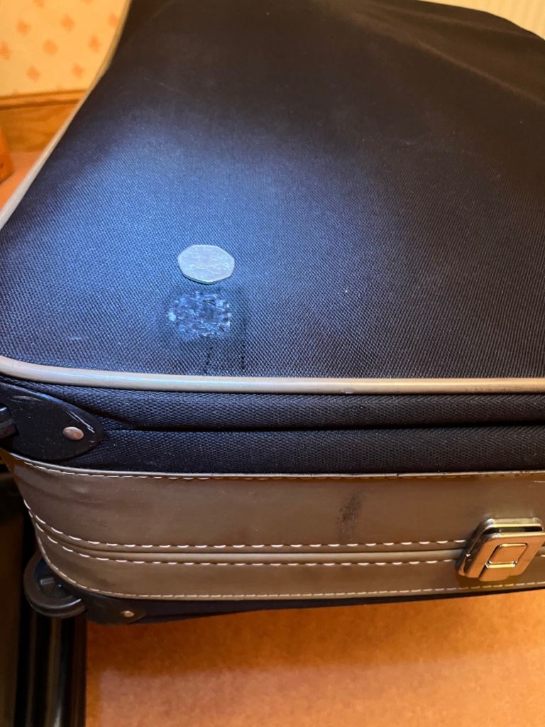 Small puncture mark (50piece size) on the bottom of the large case but this has been repaired