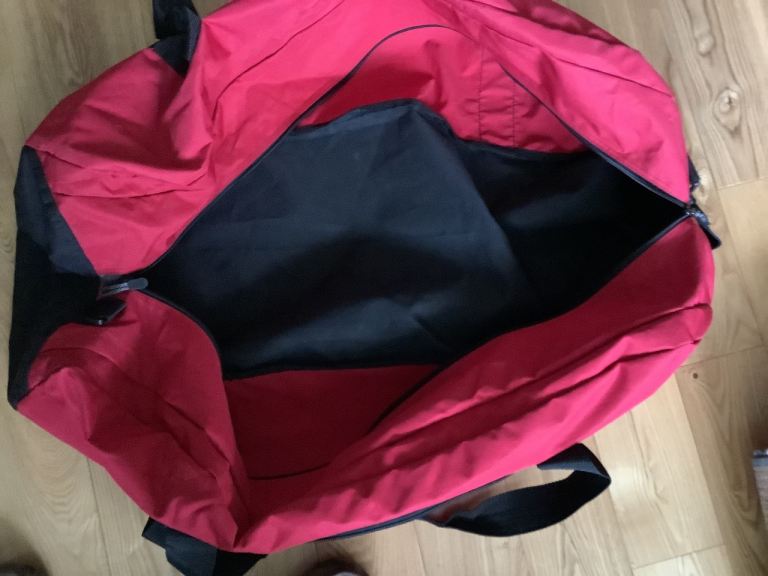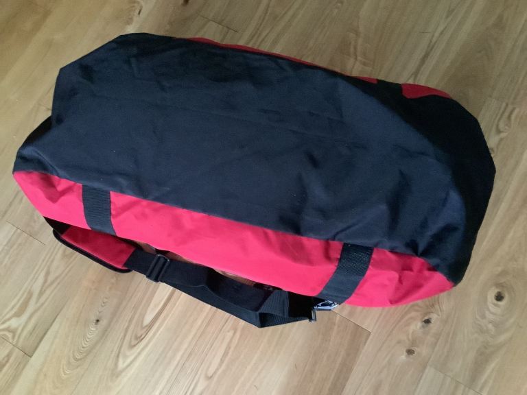 Red Ridgeway Duffel/ Sports bag, brand new condition as never used. Shoulder strap, front pocket. Size approx 90 cm long. From a pet and smoke free home. Collection only