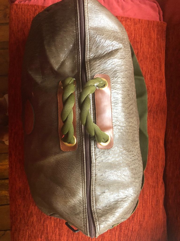 Olive coloured, Salvador Bachiller travel bag with cord handles, webbing shoulder strap and long zip. Bought in Madrid a year ago but hardly used.