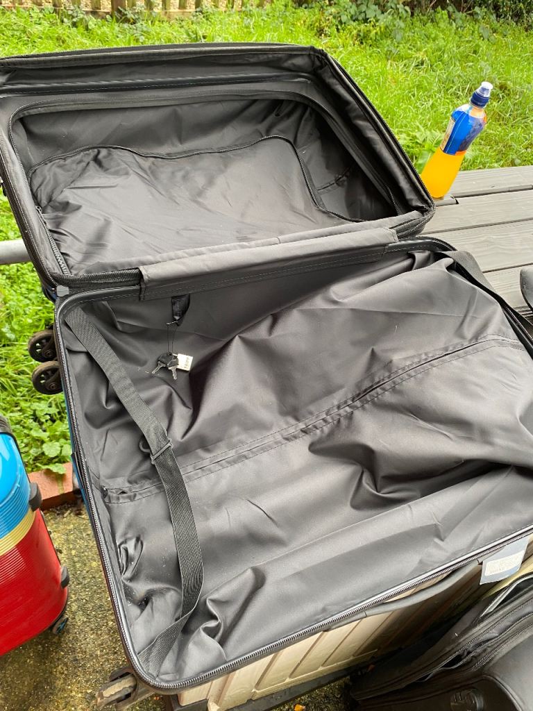 new with tags but it does have scuffs on the outside because of the type of suitcase it is.