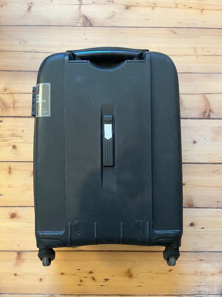 Used condition. Various scuffs and use marks. Squeaky wheel.