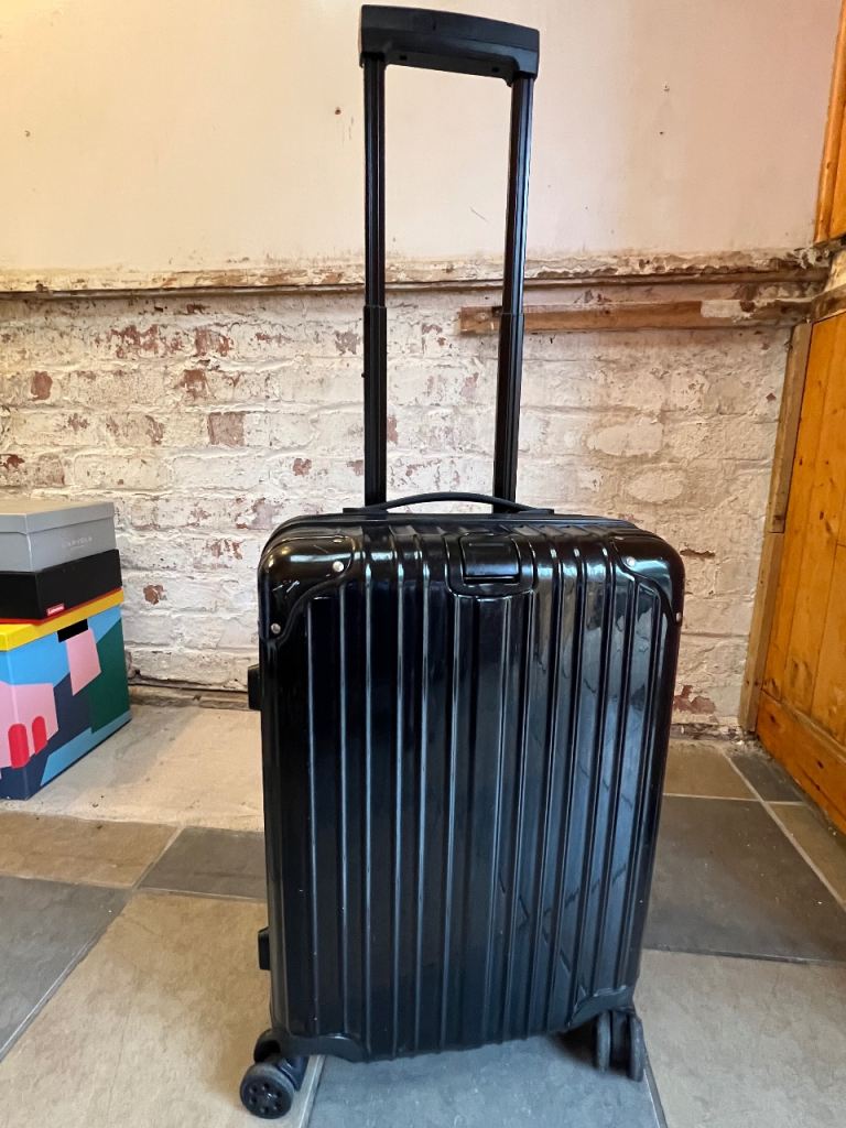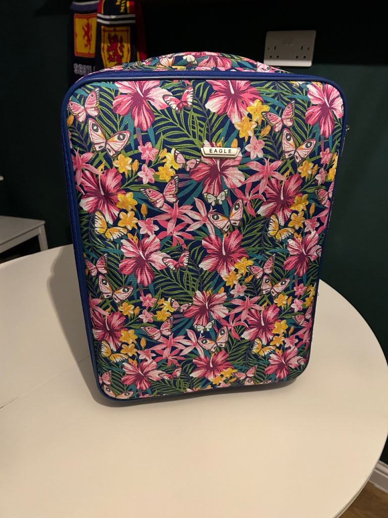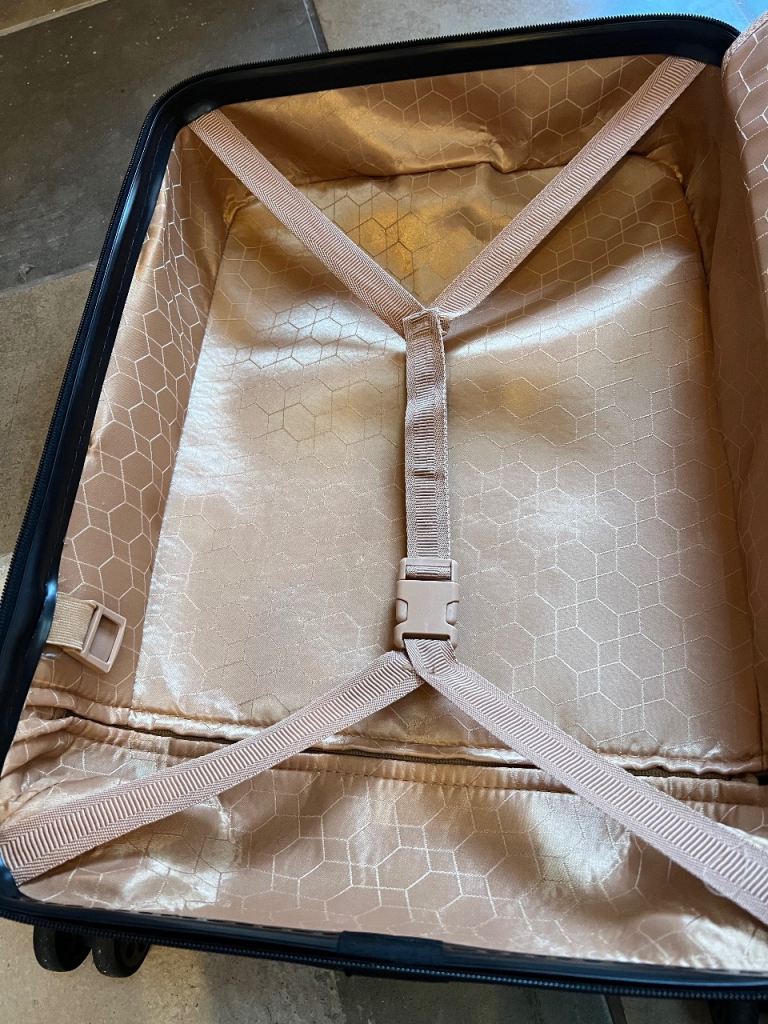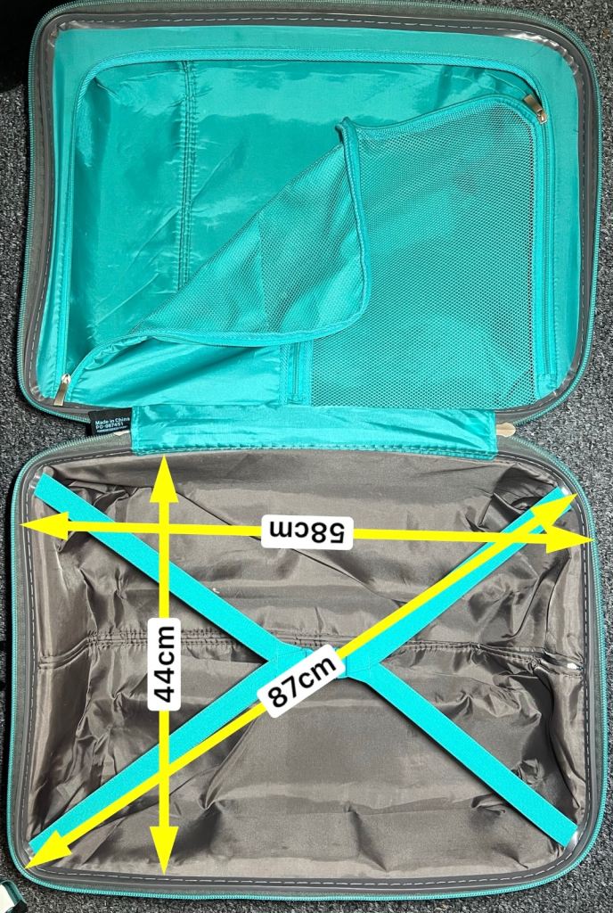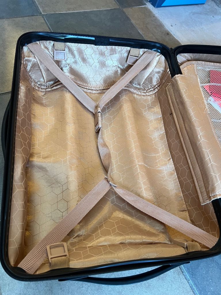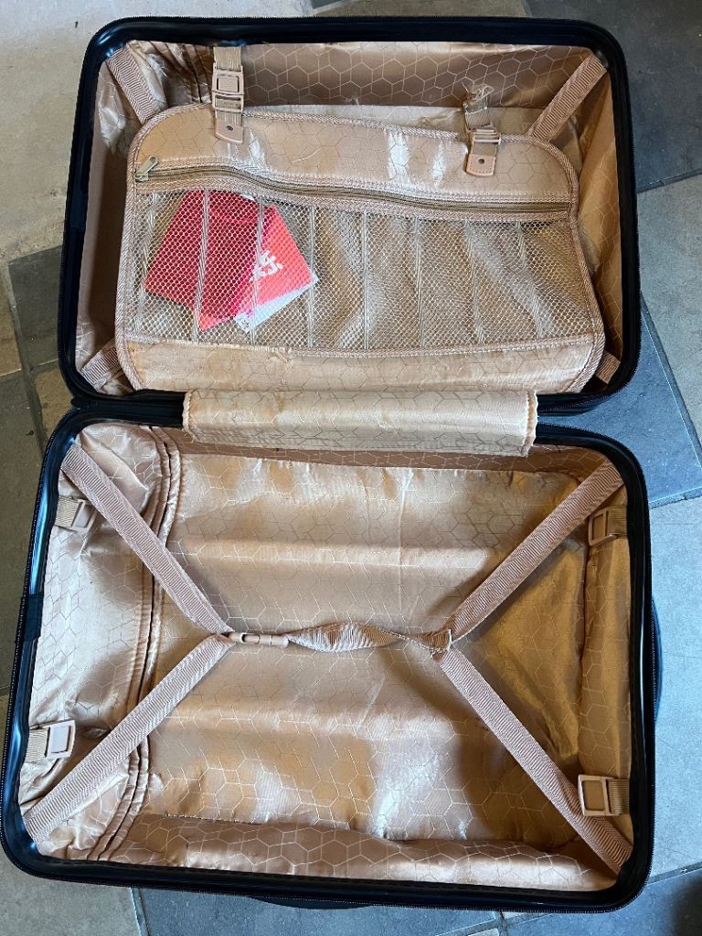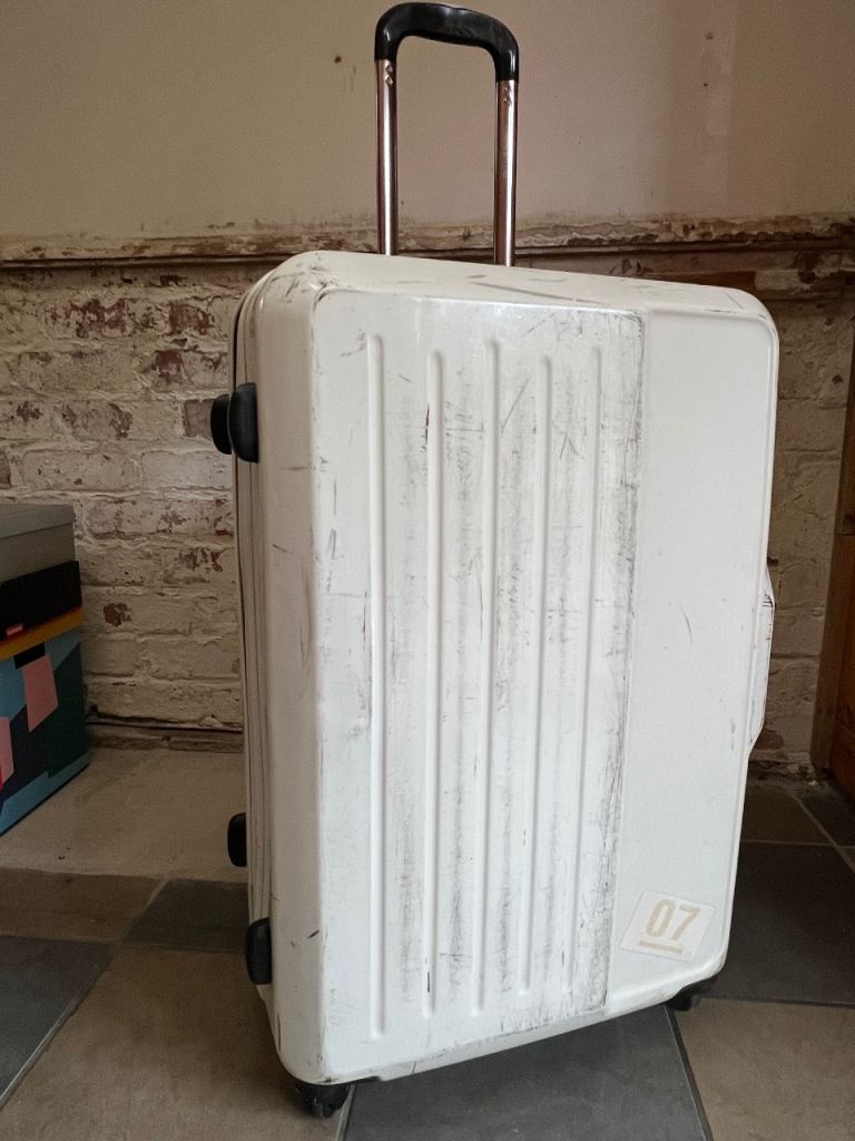 - With hard shell, locks, spinner wheel, telescopic handle, all working ok