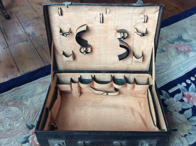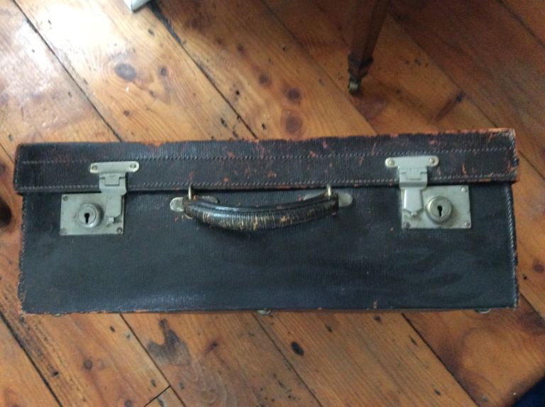 An Edwardian vintage leather case for dressing table set. Condition as seen in photos.