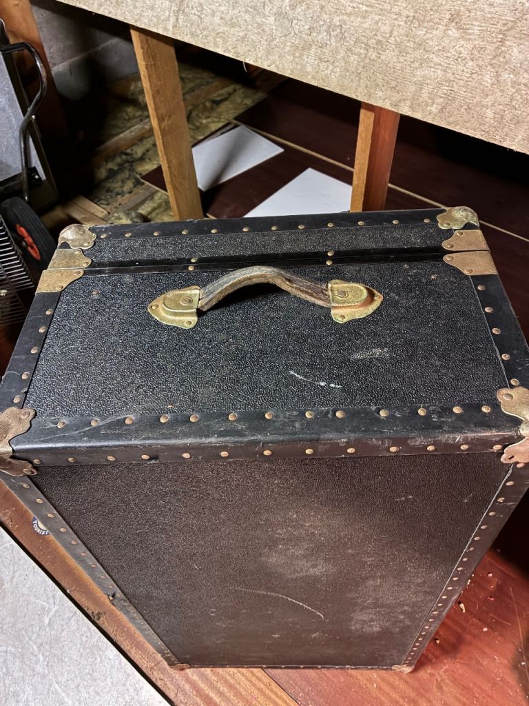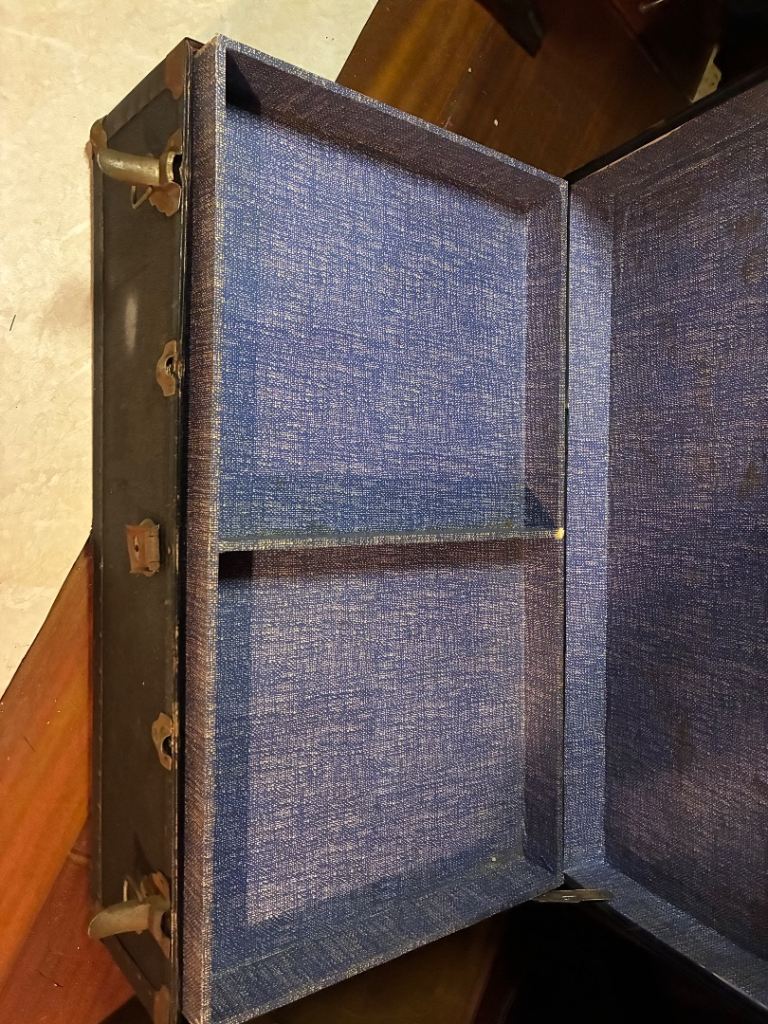 Length 93 cm, height 34cm, width 52cm. This suitcase is over 70 years old. Has been in my roof space over 50 years. This would be suitable for upscaling, or maybe in a shop. Possible coffee table, down to someone’s imagination. There is History with it, but not enough room here.