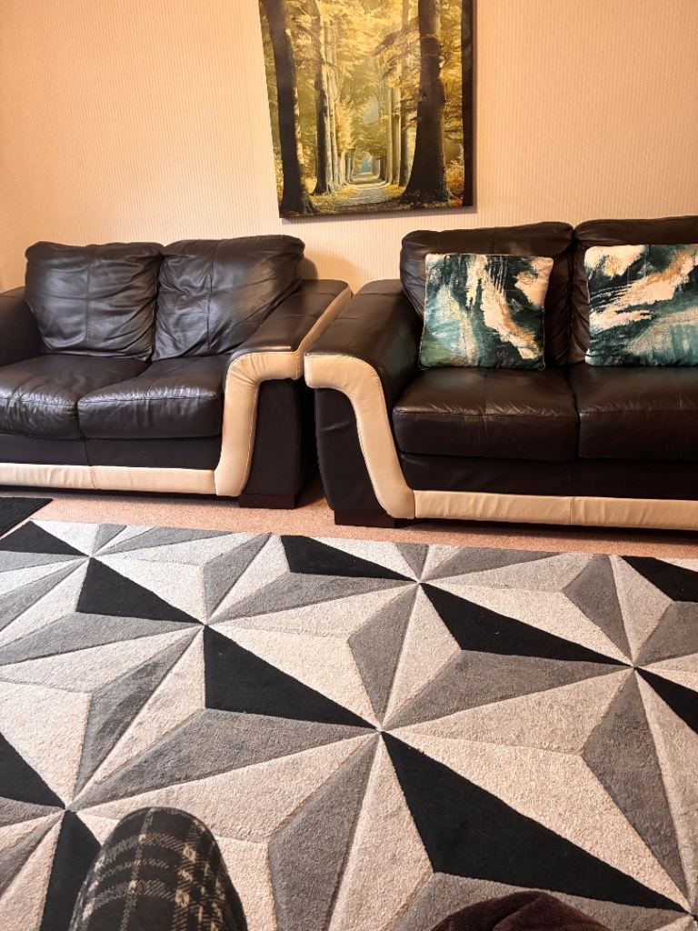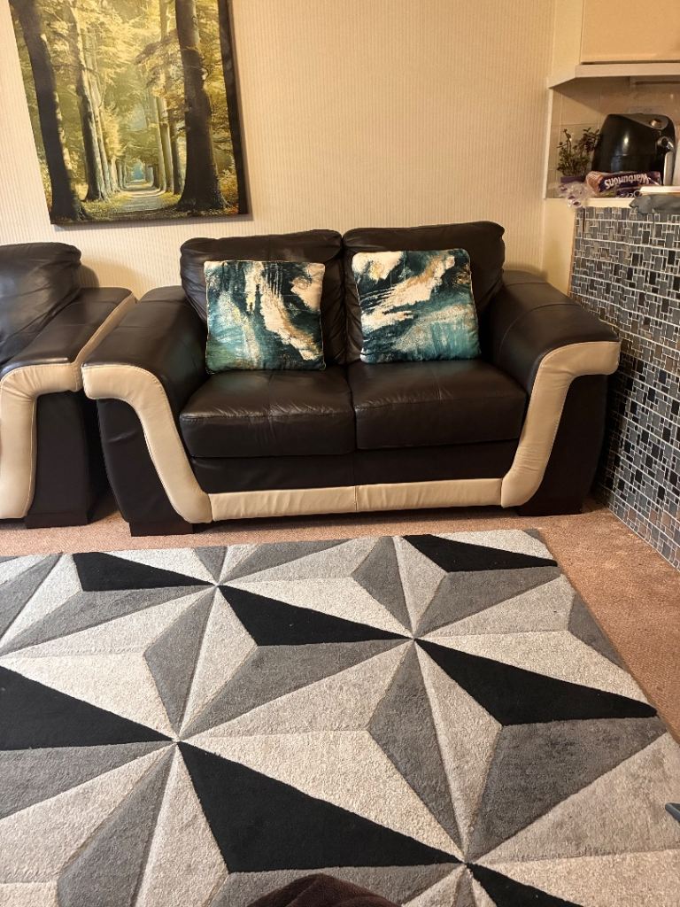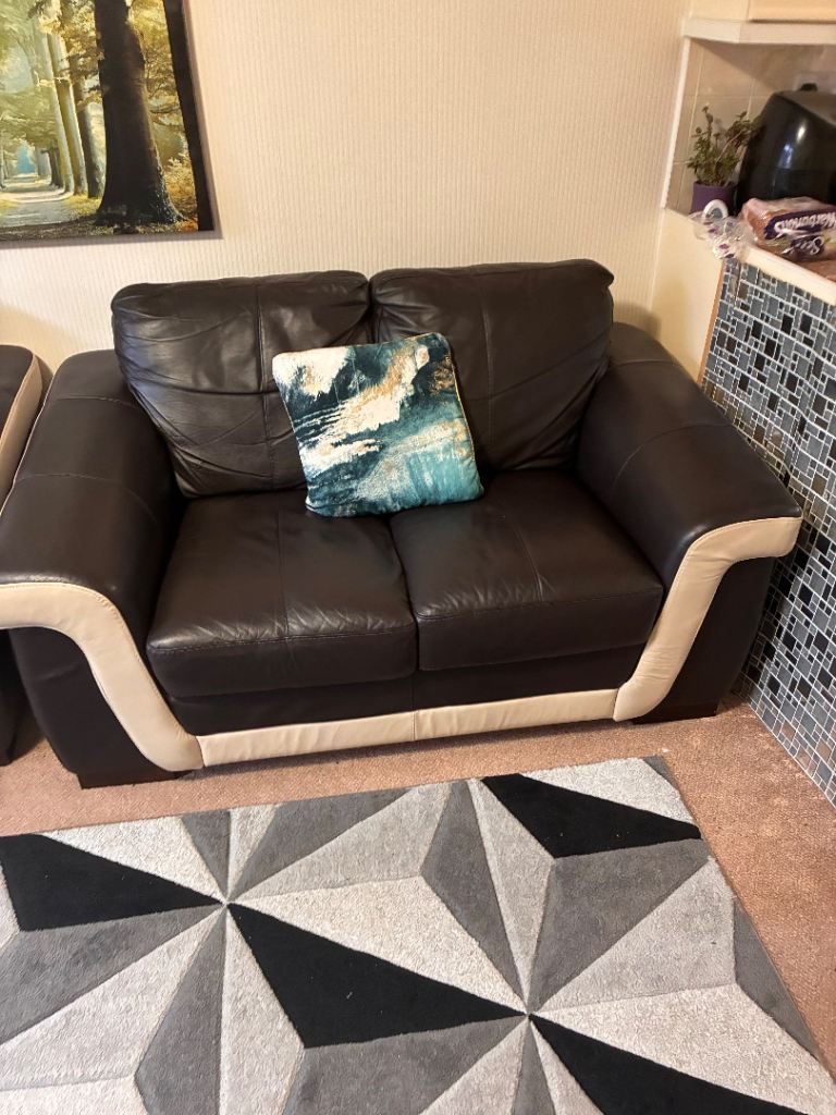 Posting for under a monthTwo 2 seaters Brown and cream soft leather