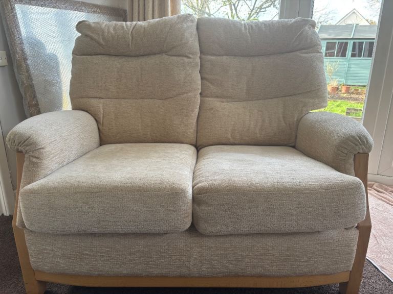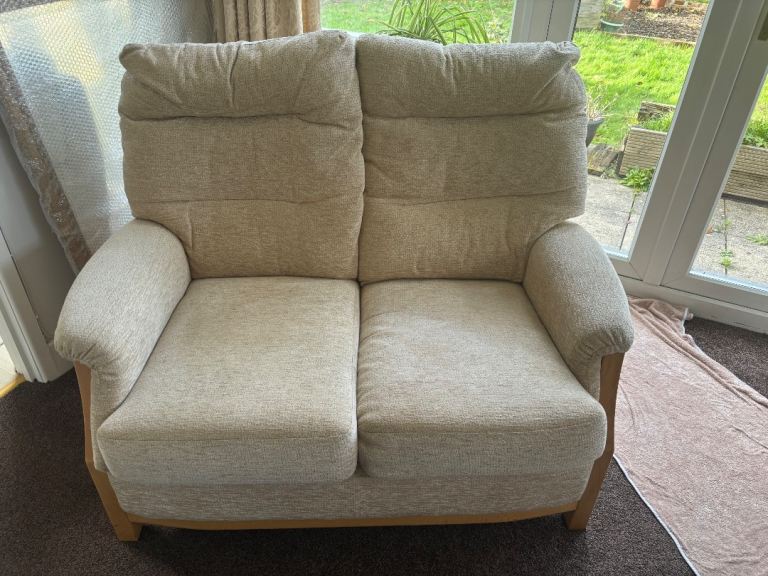 Beige 2 seater armchair / sofa. Good condition, freshly washed and has detachable cushions (back and seat) will take offers and buyer must collect - 32inch height 37inch width 50inch