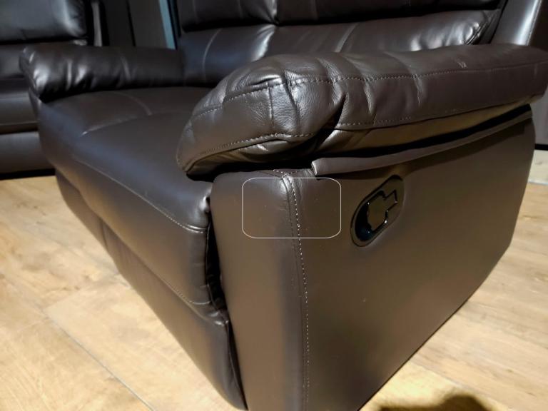 The sofa only few days old. Damaged on delivery. Has some bruises at the back (marked in photo) won't be seen against the wall. Also few tiny cat scratches on one arm but nothing noticeable. Otherwise still as new.