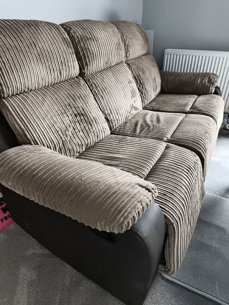 These sofas are in almost new condition. We have only owned them for a few months and selling as we bought them from a friend who didnt want them but couldn't send them back to Argos.