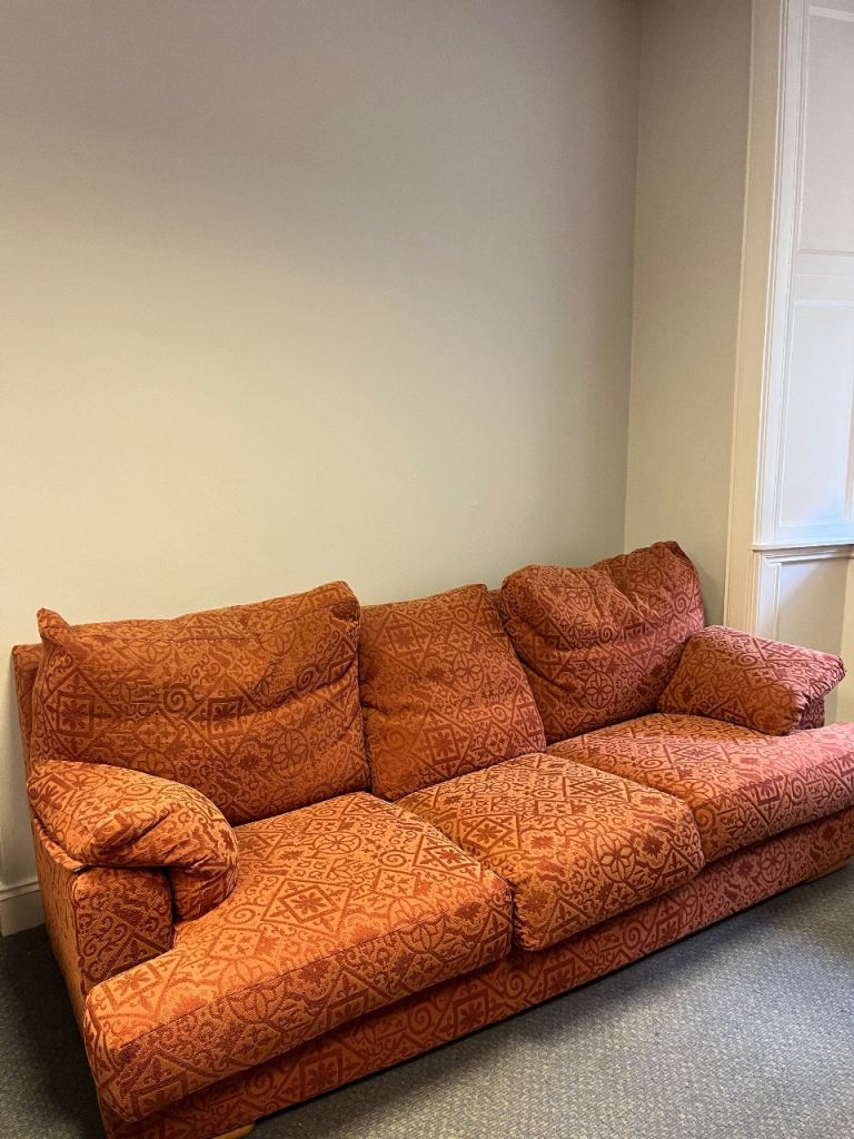 3 piece suite in really good nick. Arms and back need a clean to make condition Very Good. One of the cushions has a broken zip but not visible and could be fixed. Would make a cracking first suite.