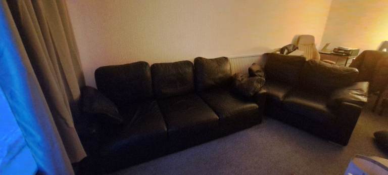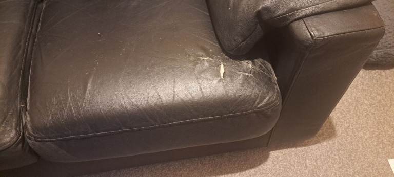 Black leather 3 seater and 2 seater. Still got alot of life left in them. Small tear on 2 seater cushion as shown in picture. Collection only need gone as moving.