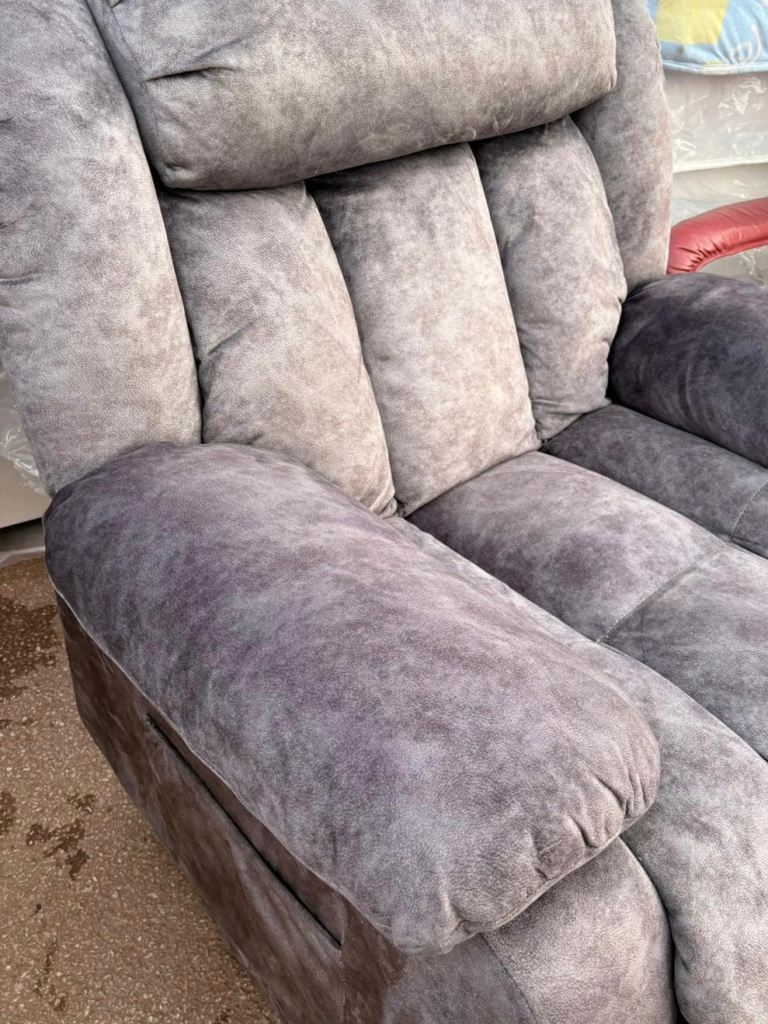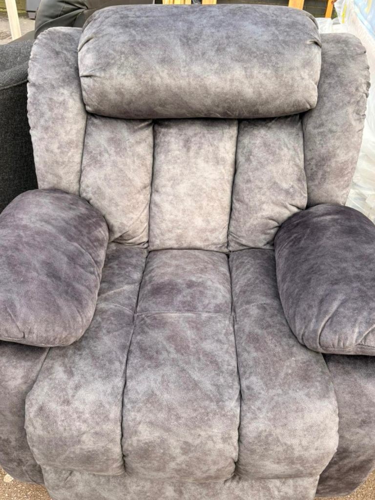 Armchair POWER RECLINING, beautiful soft velvet, grey colour, immaculate condition, very comfortable and luxurious! possible local delivery bargain 95 pounds.