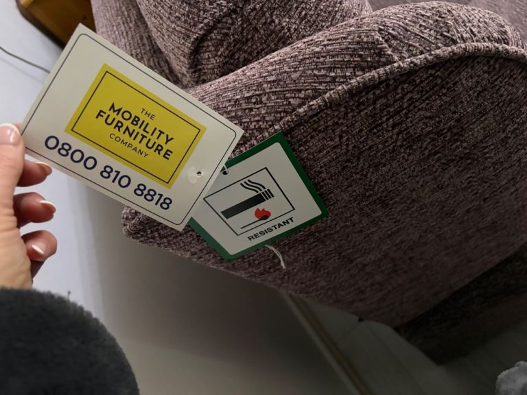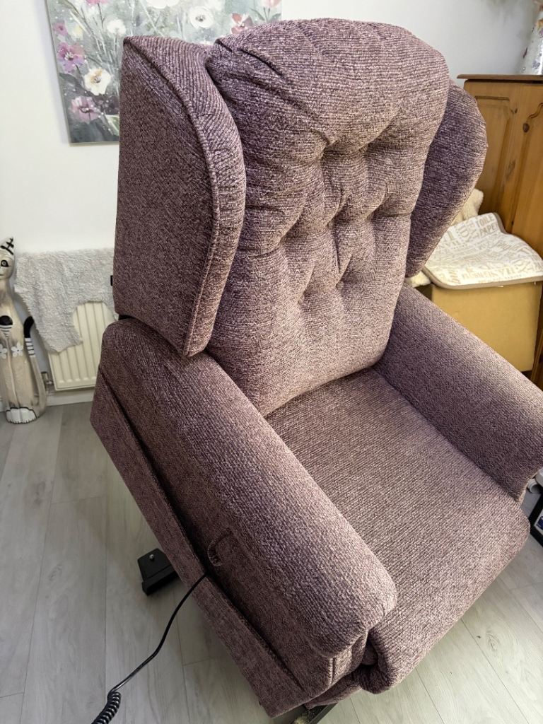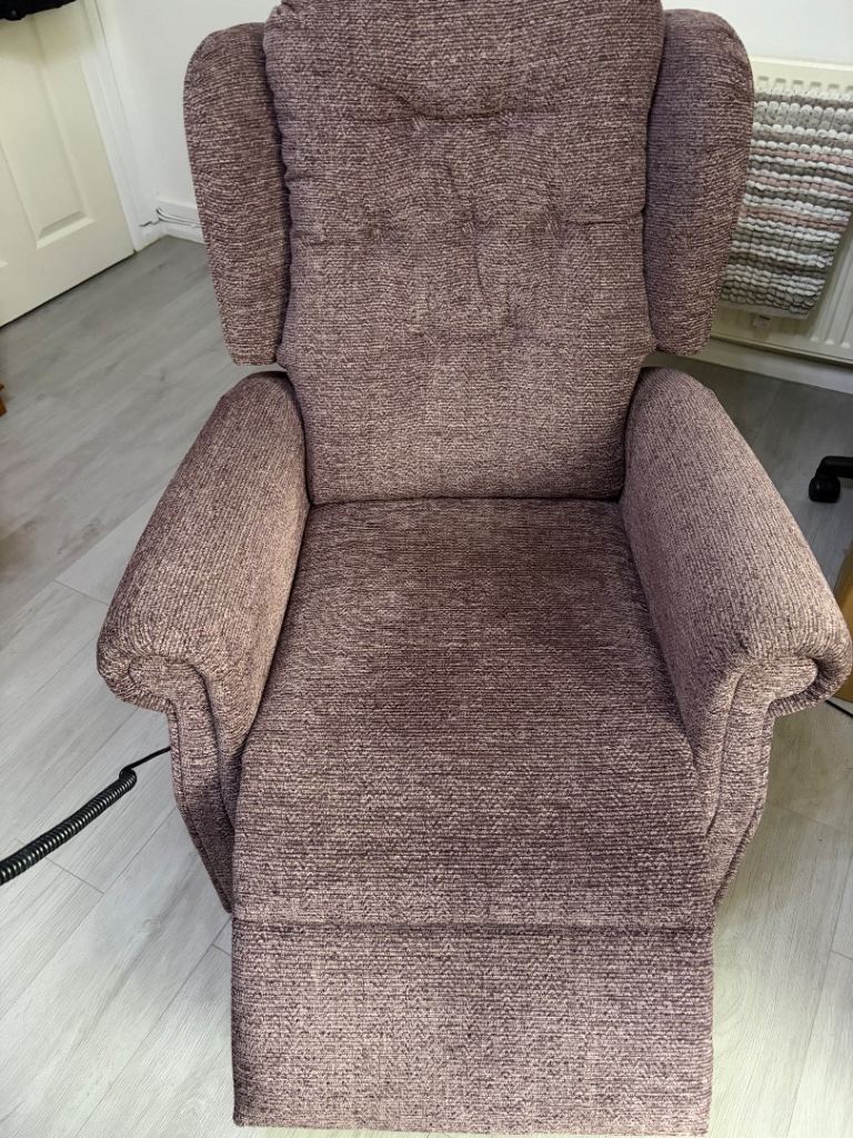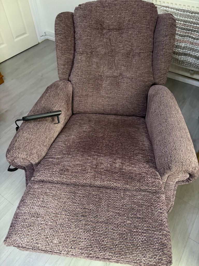 Brand new still with tags on rise and recline armchair with matching 3 seat sofa. Perfect condition with no marks or imperfections. Genuine reason for sale - collection only from the Penarth area.