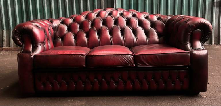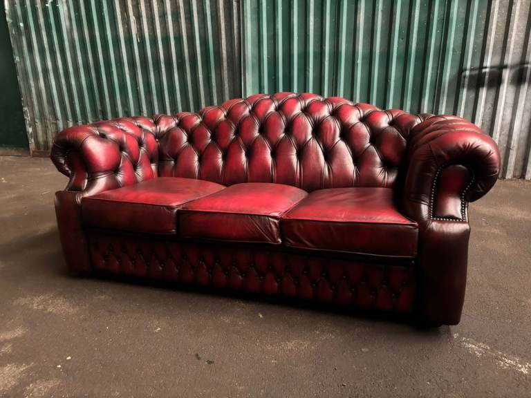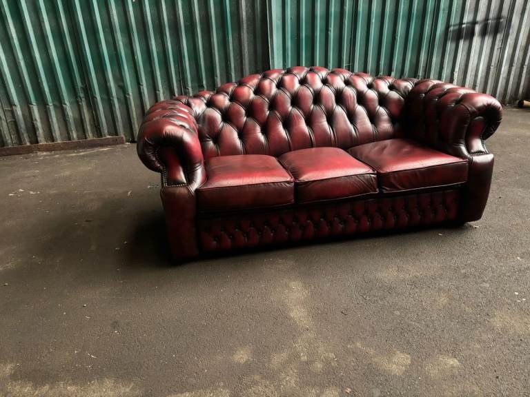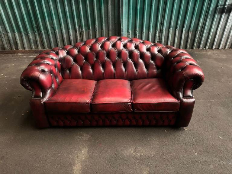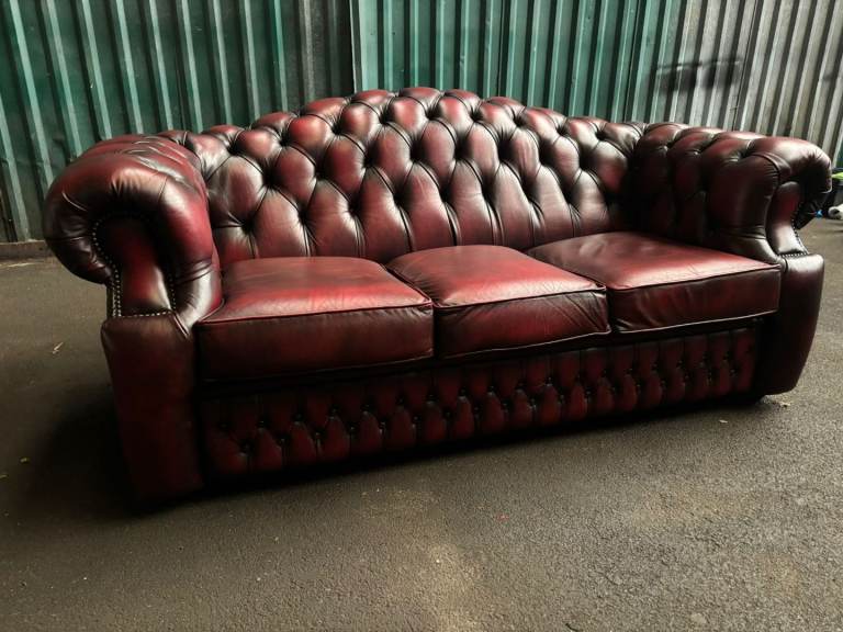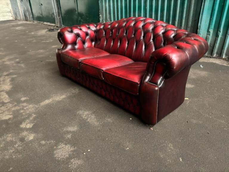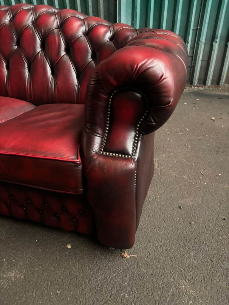 Chesterfield oxblood leather 3 seater sofa. Excelent condition