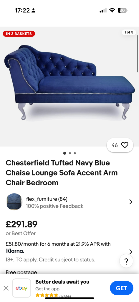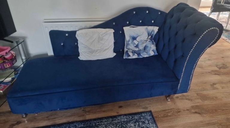 Royal blue plush velvet corner sofa with chaise lounge diamond studding only chaise lounge costs alone over £200