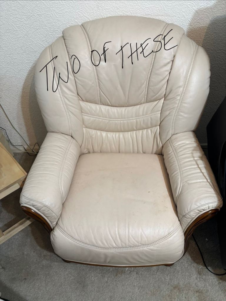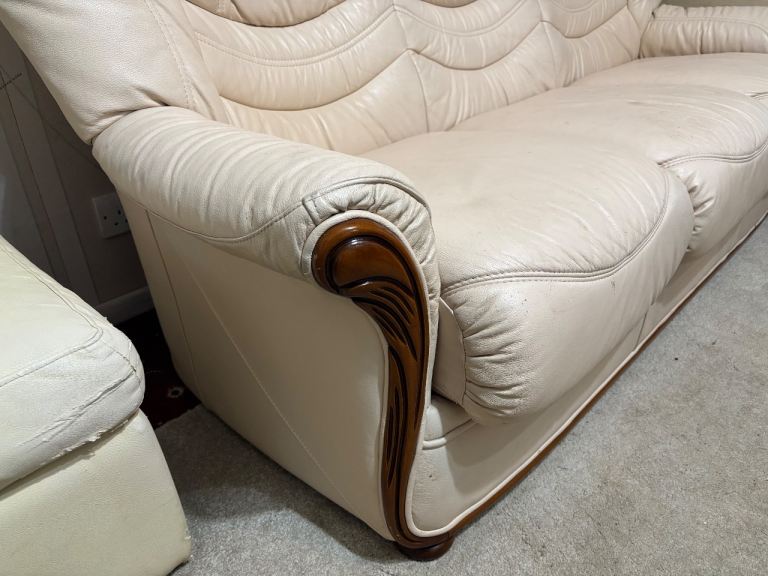 Posting for 12+ yearsCream leather 3 piece suite sofa 2 armchairs MUST GO ASAP