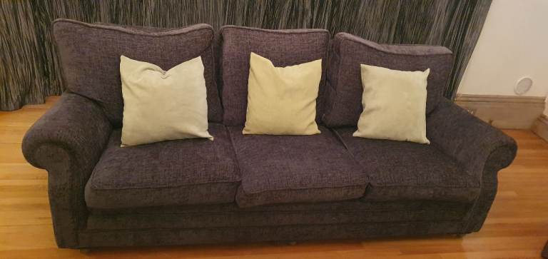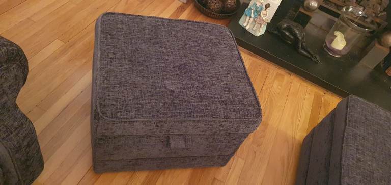 Posting for under a monthDark grey three sofa suite with ottomans